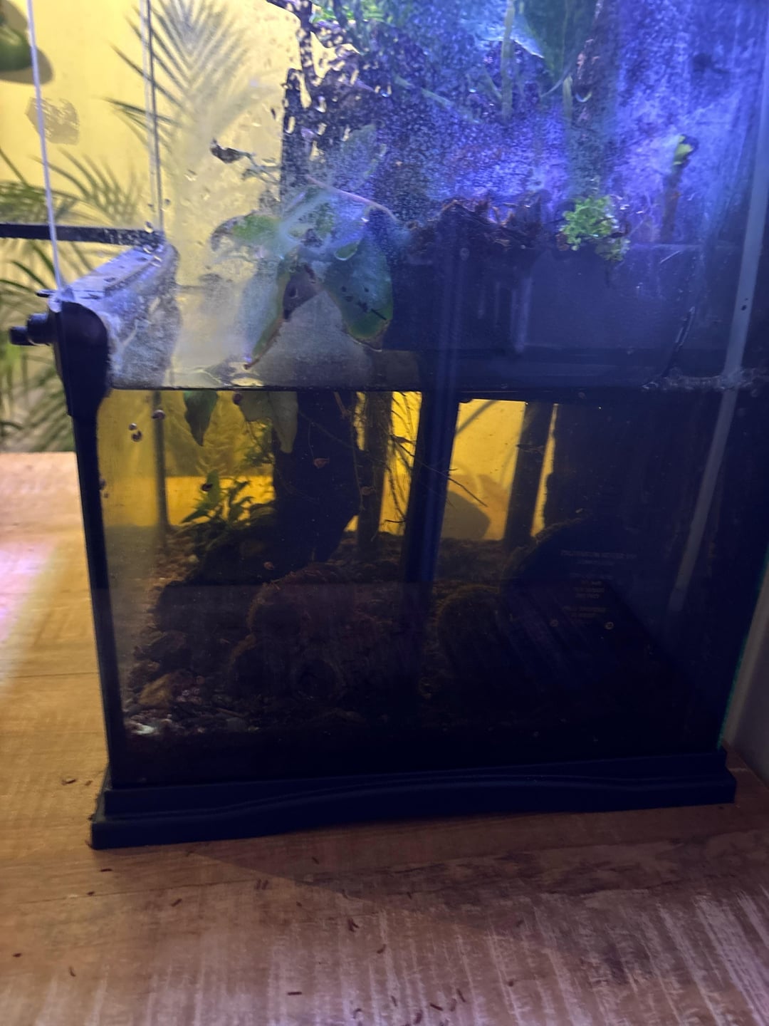 hi i'm new to reddit i recently got a small paludarium of 12x12x24 in the water part i already have 6 Boraras maculatus and 1 badis badis bengalensis for the rest I still have 2 snails brotia pagodula but now I was wondering which animal I could add to the land part I was thinking about vampire crabs but I was wondering if there are better options I live in a apartmet so an animal that makes a lot of noise is not an option