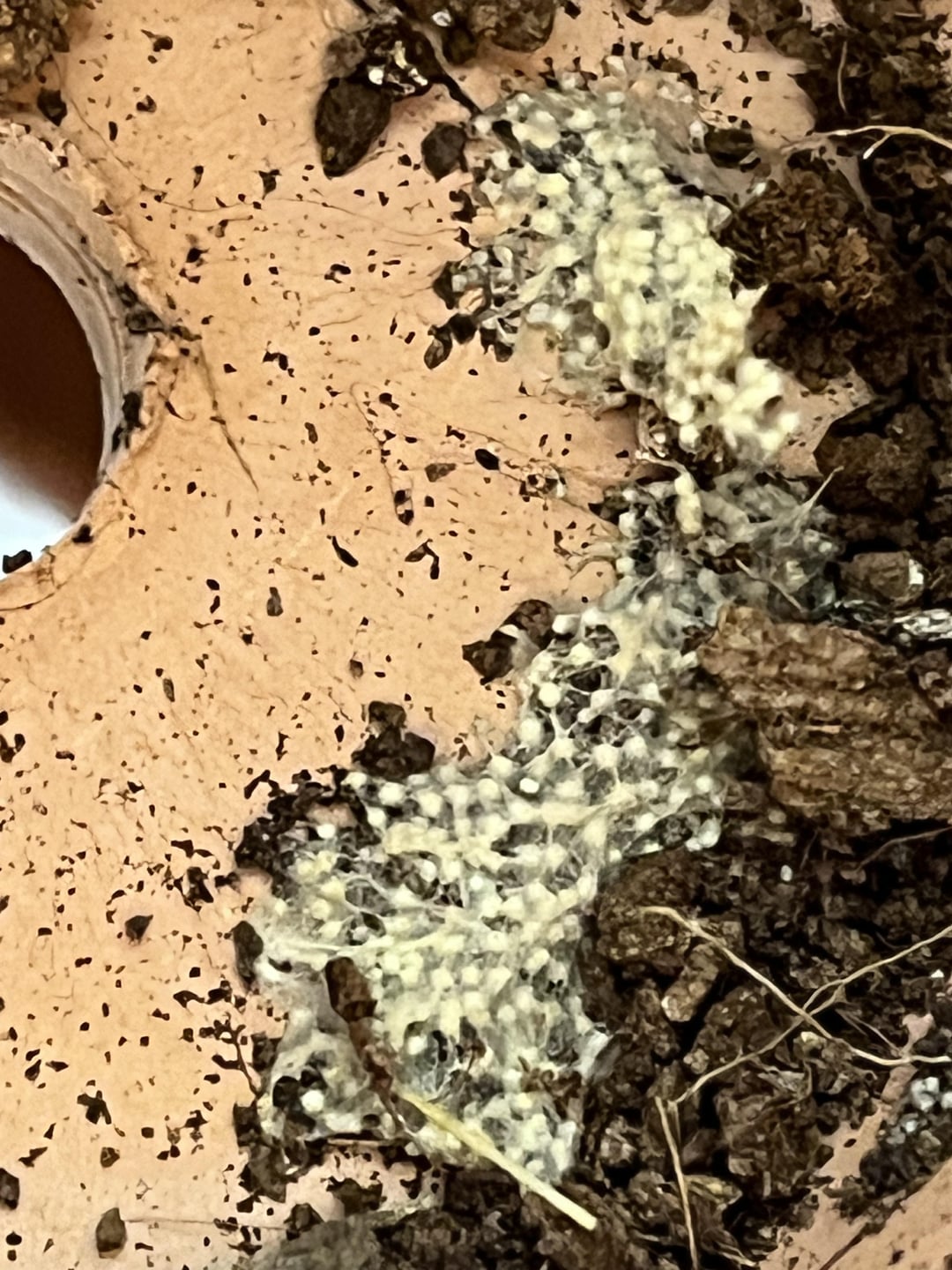 Can anyone identify these egg looking things found inside the container with my euphorbia? by chirpsydon plants 6 Comments YourkaRich 7 months ago Not eggs- mold – a good mold just leave it alone arioandy 7 months ago Normal nae probs! Bit too much water and too organic- wont harm it DoubleMojon 7 months ago Slime mold! It looks like brefeldia maxima. The people at r/slimemolds would love this lol MaliceAssociate 7 months ago It looks like fungi in my opinion , but the beneficial kind that helps decompose the soil mix rather than plant itself, I would leave it be. IYIatthys 7 months ago Mmmm forbidden enoki flatgreysky 7 months ago Saprophytic fungi. Harmless. Write A CommentYou must be logged in to post a comment.