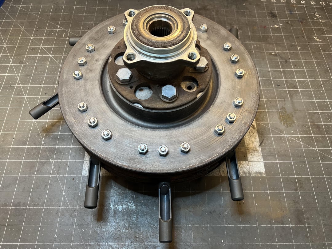 Loosely inspired by the Amick Rollaerator and other youtube builds. Two large break rotors with articulating home made tines from 1/2” black pipe and a wheel hub / bearing.