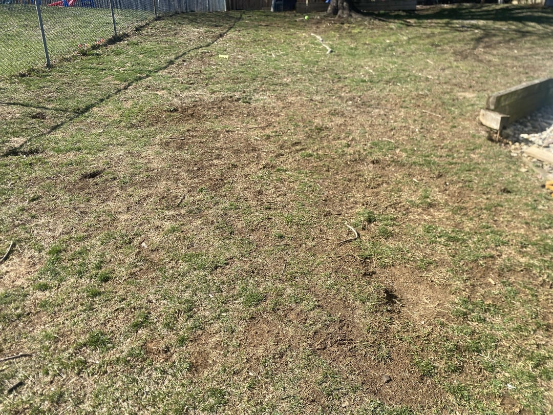 – Core aerate and immediately spread about a half inch of sand and organic matter. For example, 50/50 sand and compost. This will help alleviate compaction and encourage drainage (which minimizes urine damage).