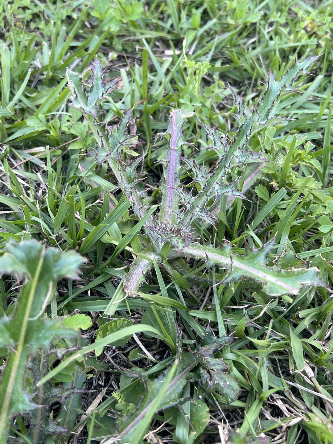 I would step on these once before spraying. It breaks the core and opens the pores in the leaves. Helps uptake chemicals in thistle weeds.