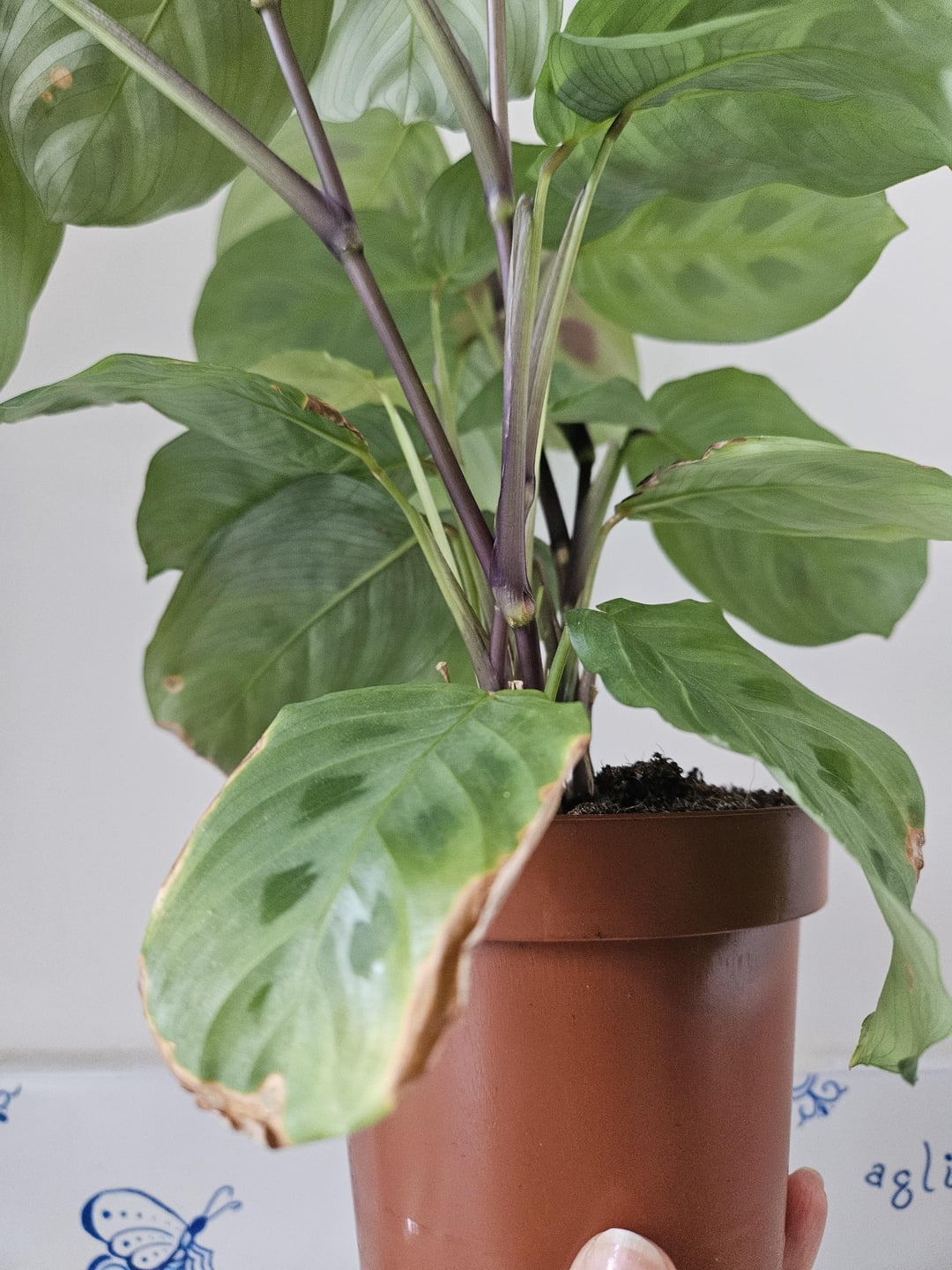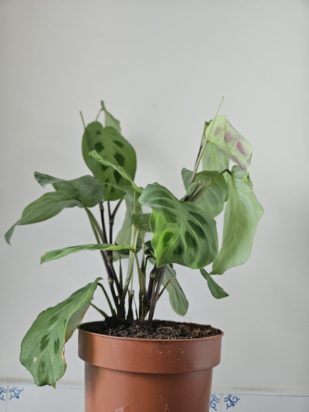 I’ve had my maranta for ages now, and it’s one of my oldest, so it’s put up with my mistakes for a long time. It’s currently flourishing and flowering, but it’s had its bad moods.