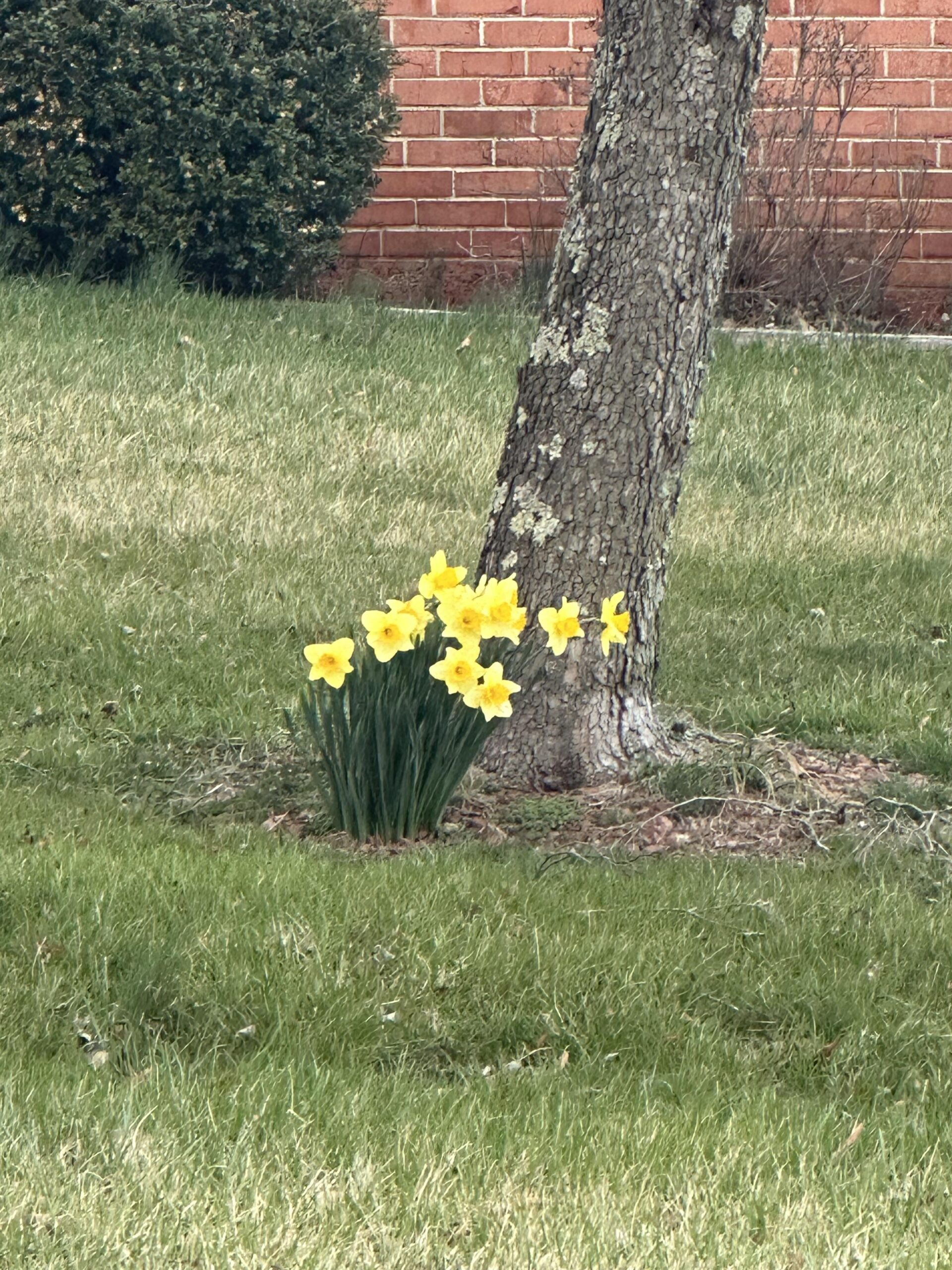 I always think of daffodils as a happy flower. There’s one single one growing just outside my works window, coming back year after year, just one flower LOL