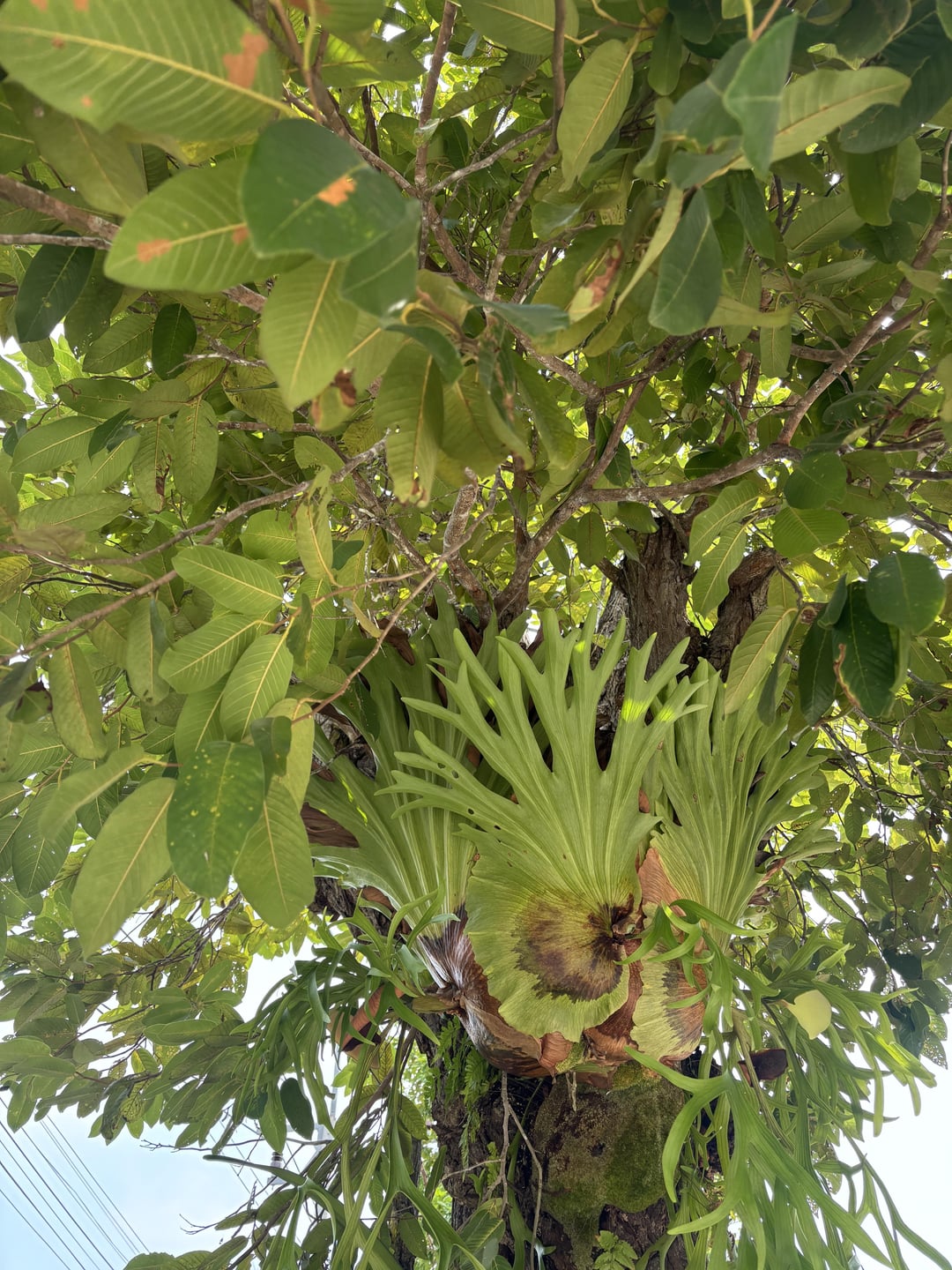 It’s a staghorn fern. They are a type of aerial plant that draws nutrients and water from the air, and won’t harm the tree. I love them.