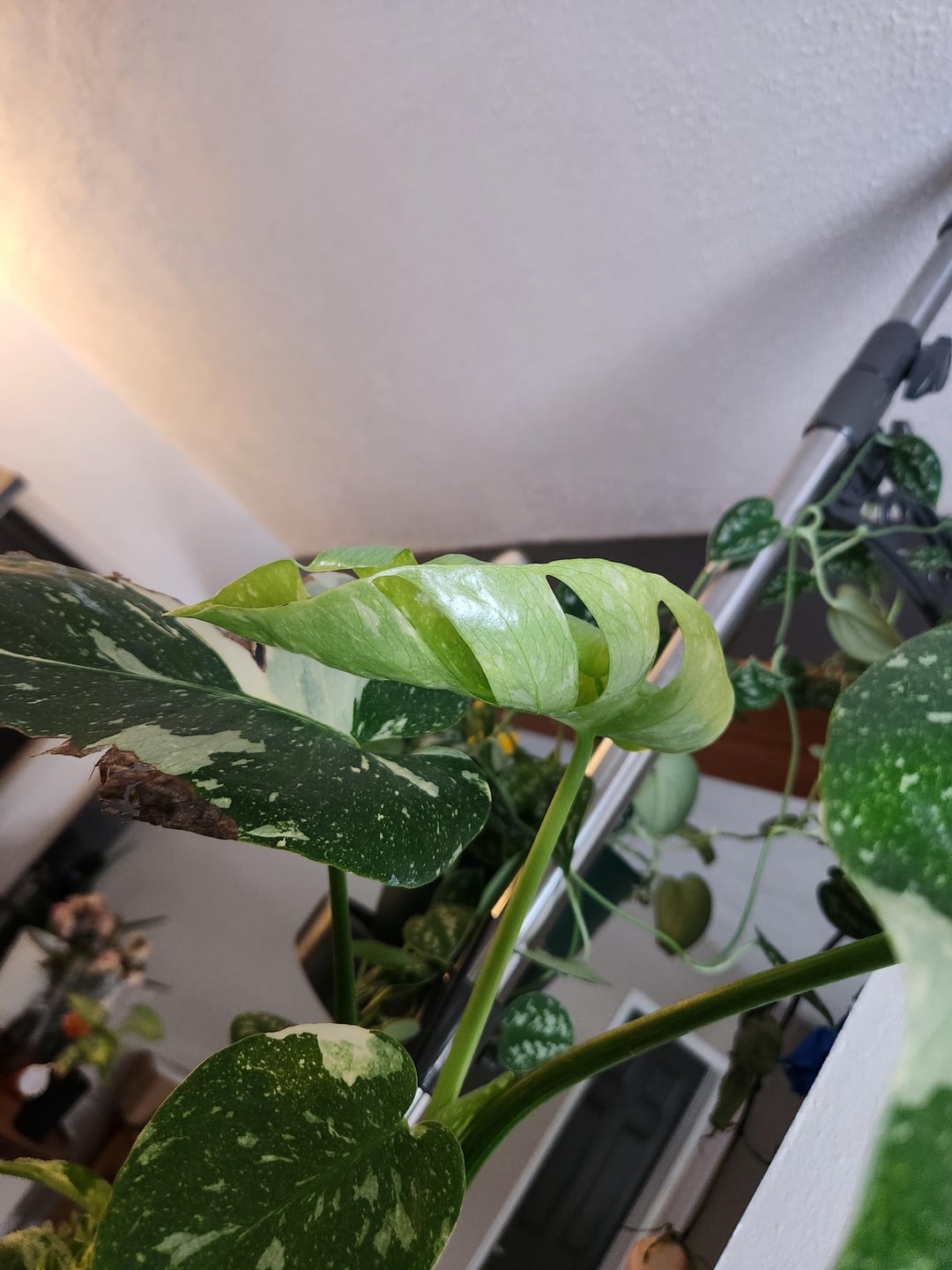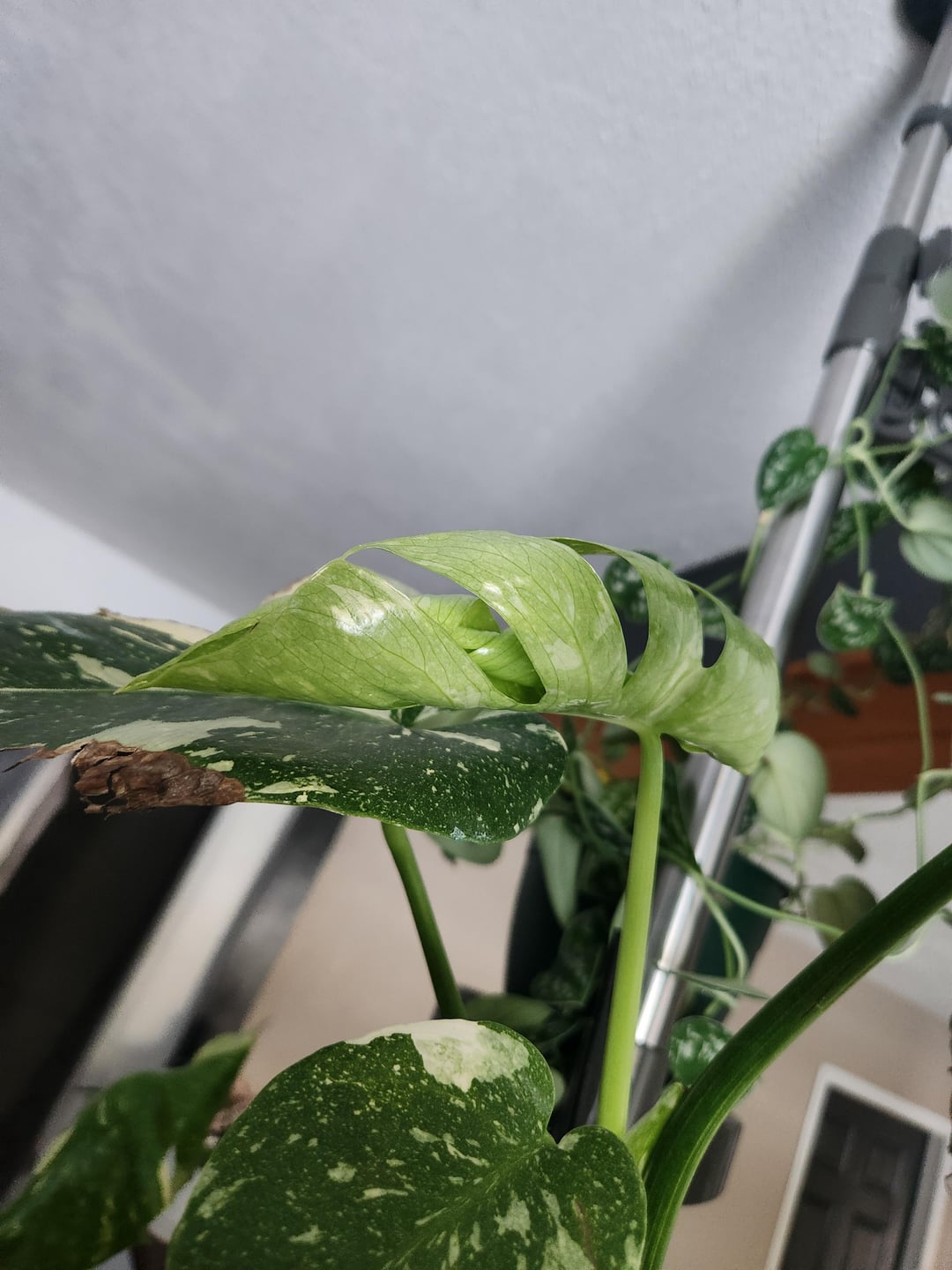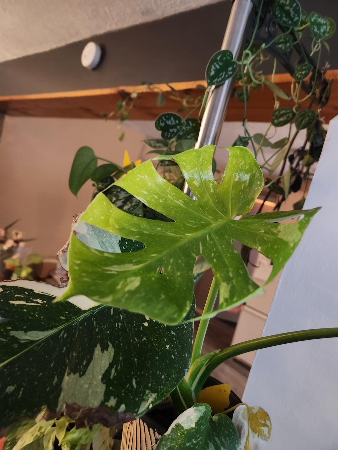 It was fun watching this leaf grow.. it got me thinking, has anyone ever setup a camera for time-lapse of their plants growing? Anyways, I hope ya'll find my leaf as pretty as I do, it took nearly a year to pop out but we've finally found it's happy conditions ☺️