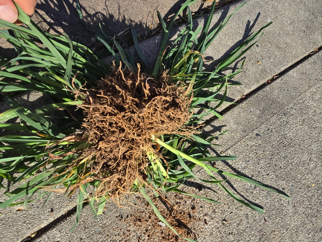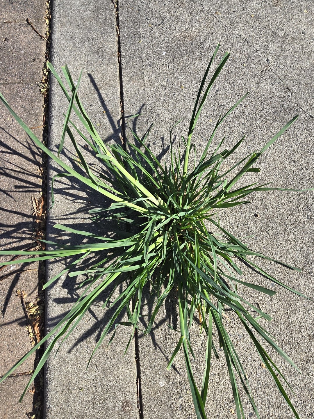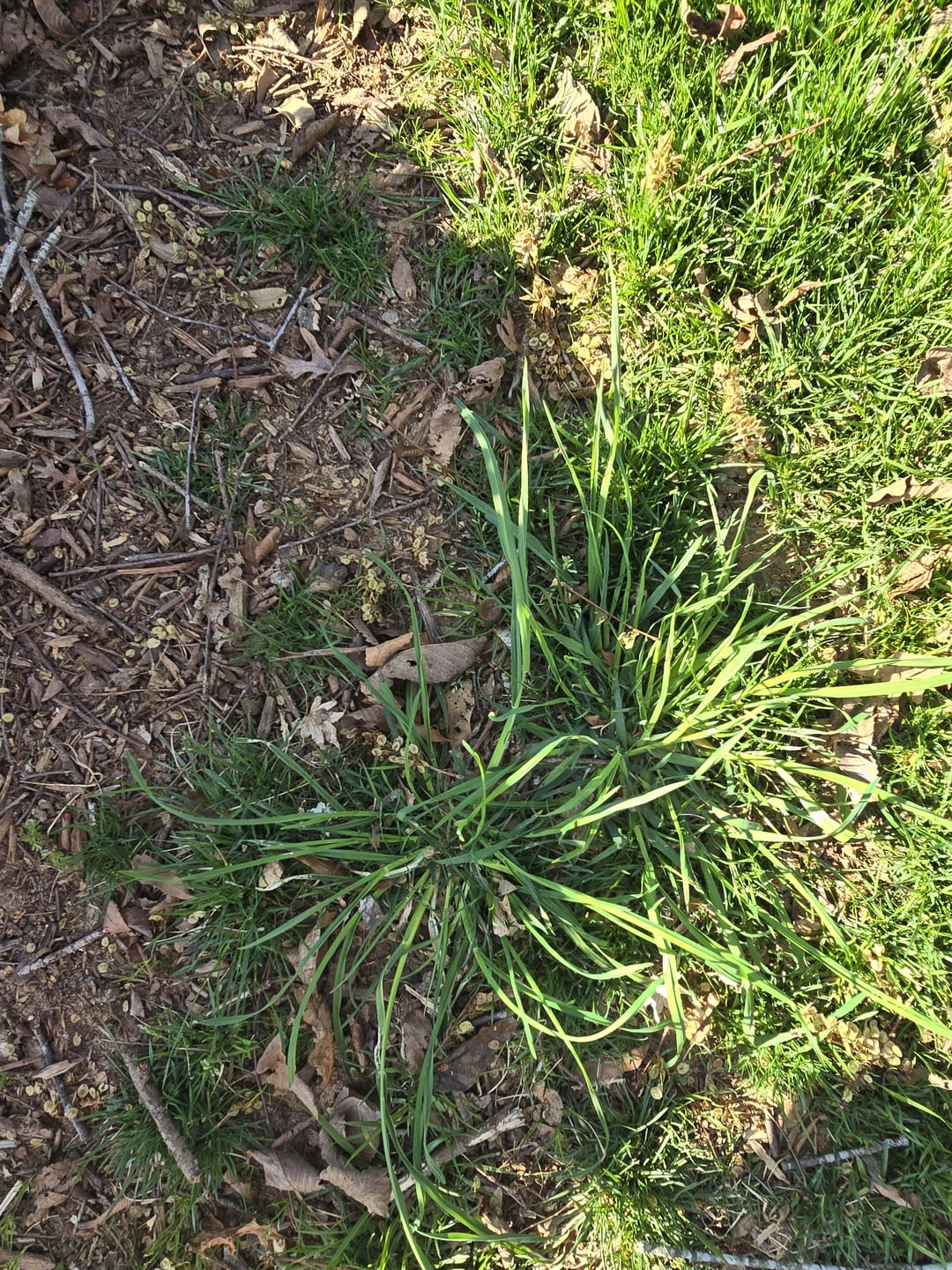 It also needs to get pretty tall in order to produce seeds, so all of those seeds came from somewhere outside of your lawn. Cheap seed mixes would be one possibility, but usually when you see this much, it means you’ve got orchardgrass growing in an unmanaged area nearby… So look around for that. It’ll be just like this, except bigger, probably 1.5-2 feet tall. Though this time of year it may be collapsed and brown still.