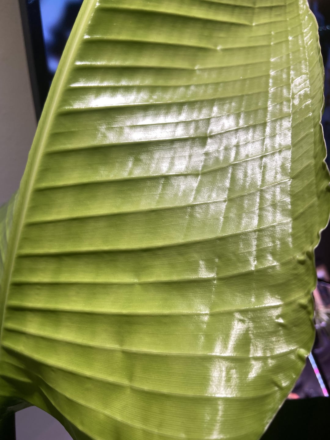 This leaf unfurled yesterday while I was at work at when I came home I noticed the 4 different gradient colors! Never seen this before, assuming it is from the plant light above. Thought I’d share because it looks cool! You guys think it will stay this way?