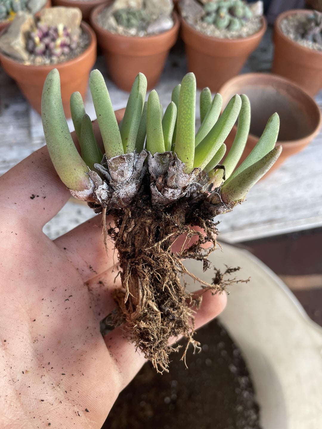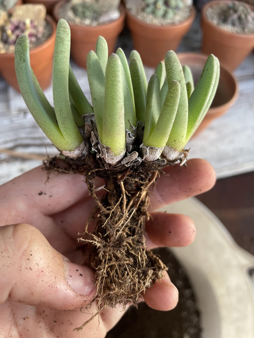 ID please? by Lollysussything Aizoaceaemesembs 1 Comment GoatLegRedux 7 months ago First one is Conophytum pellucidum var terricolor, second looks like maybe Cheiridopsis sp., but without flowers it could be many things. Write A CommentYou must be logged in to post a comment.