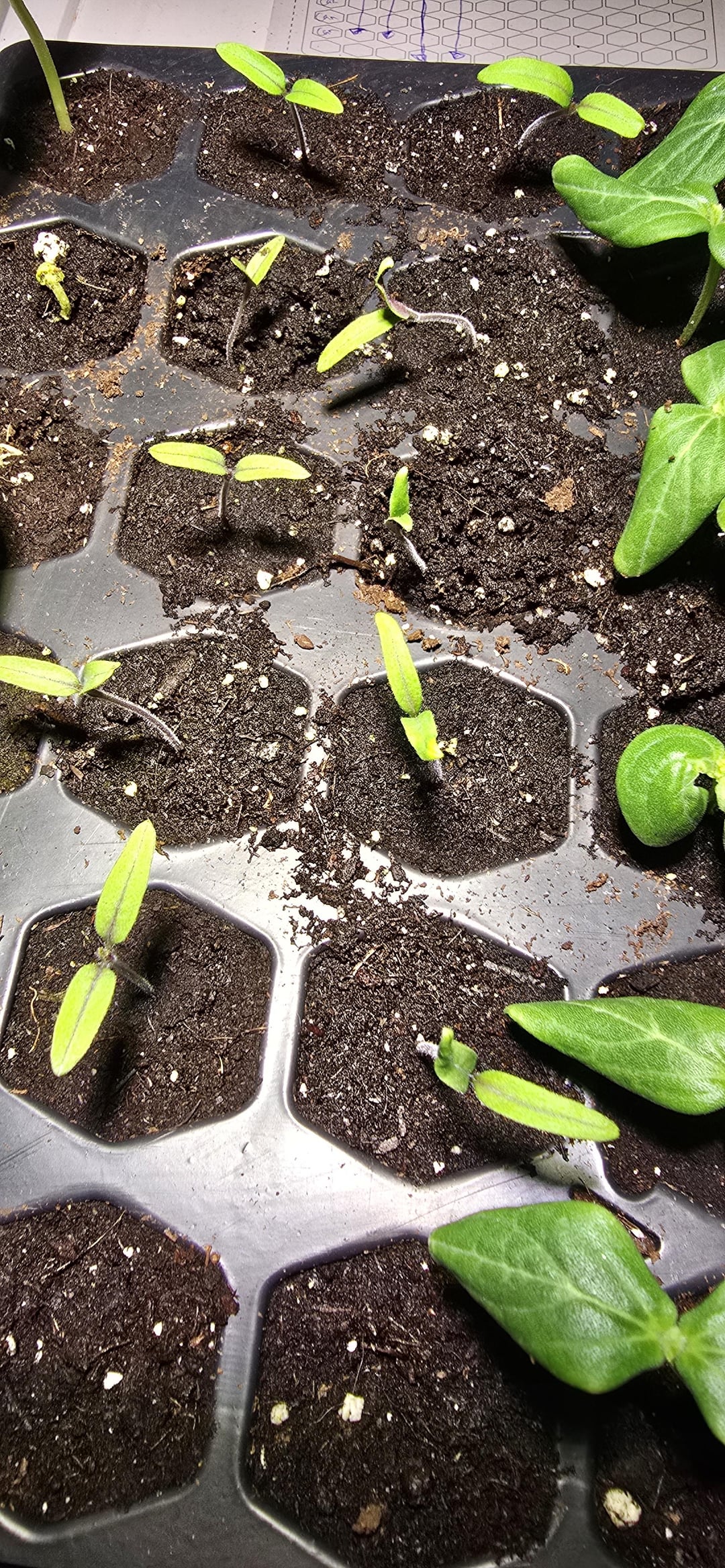 First time startimg seed under a grow light, everything looks happy but my 2 rows of tomatoes Sun Gold and Black Krim. Should I restart and not do grow light? ONTARIO 6A