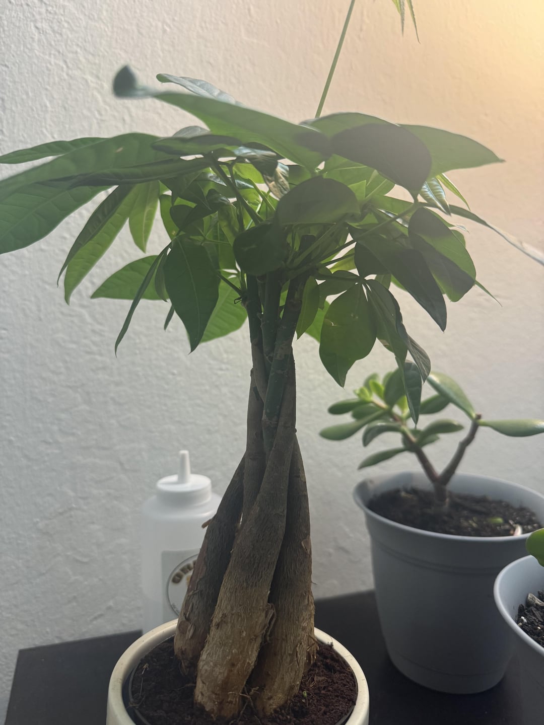 I included a picture of one of my 5-year old money trees to implore you to give it a year to strengthen up and get taller! If the light source does not cover the entire canopy, please make sure to rotate your tree bimonthly! It will help it fill out more evenly.
