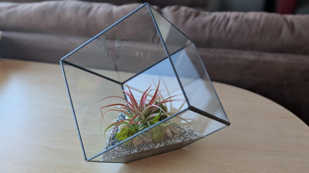 air plants dont do well in those because it traps moisture and they require plenty of open, not stagnant, air to not rot and to thrive. so many want to make aesthetic arrangements for their plants, but you need to research the environment they should be in before taking the time to do something ineffective and damaging to the plant.