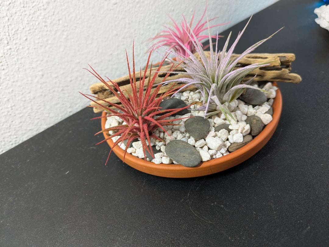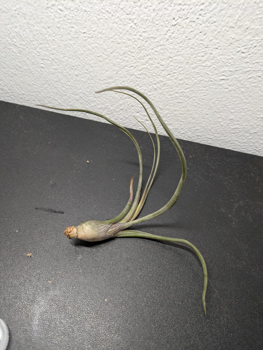 Hello, I have had these plants for a little bit now, two are ionathas and one is a tillandsia and one is a tillandsia baileyi. The baileyi I got the other day and it's slowly getting less thirsty. Any advice on caring for them? Hopefully the paint on the little guys keeps shedding