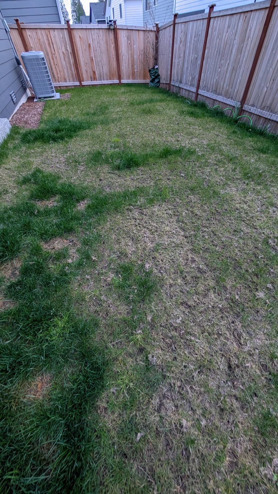 We bought a new construction in PNW in July '24. For a couple of months until closing the lawn was not maintained. But after that late in the summer we ran the sprinklers regularly until the PNW rains hit us. Except in July, the lawn has never looked fully green and fresh. We have a dog but we don't allow him to relieve himself and have been careful about the damage from dog pee as well. I'm seeing a lot of dried spots with dried grass, dried ball of roots etc. Based on lawncare posts, I'm confused if it's some mistake in caring for the lawn or we should add some fertilizers etc.