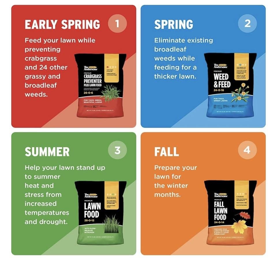 I’m not sure of the price point on Andersons products, but if they carry a premium, you can easily find identical versions of these products for cheaper. No need to spend big bucks on fertilizer. Just know when to apply what, and you’ll be fine. That graphic right there gives you a decent idea of the “when” and the “what”