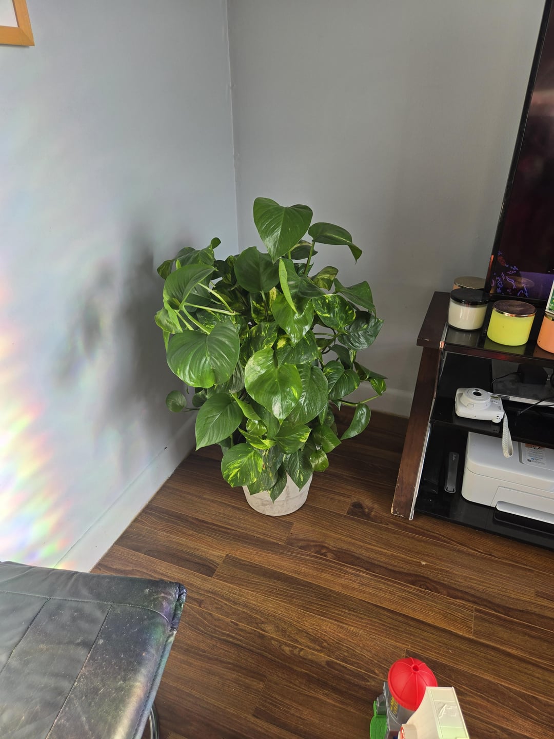 Im getting back into taking care of some plants! Just wondering if this amount of sunlight would be favorable for these hanging pothos guys that I just repotted separately from being heavily root bound together. I also repotted the BOPs which I've never owned before, so is this okay for them as well? This is a west facing window and it only gets this bright around 5-7 pm here. Would love to hear your advice! Thank you