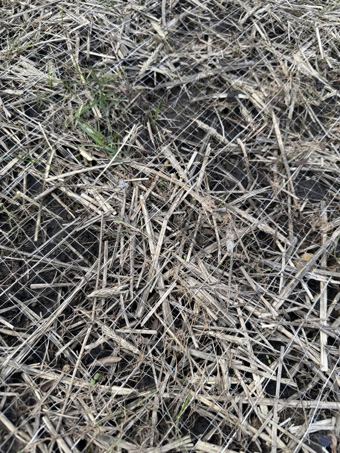 The soil under the straw and mesh is pretty moist and soft, but it is covered in mesh and straw as you can see in the photos.