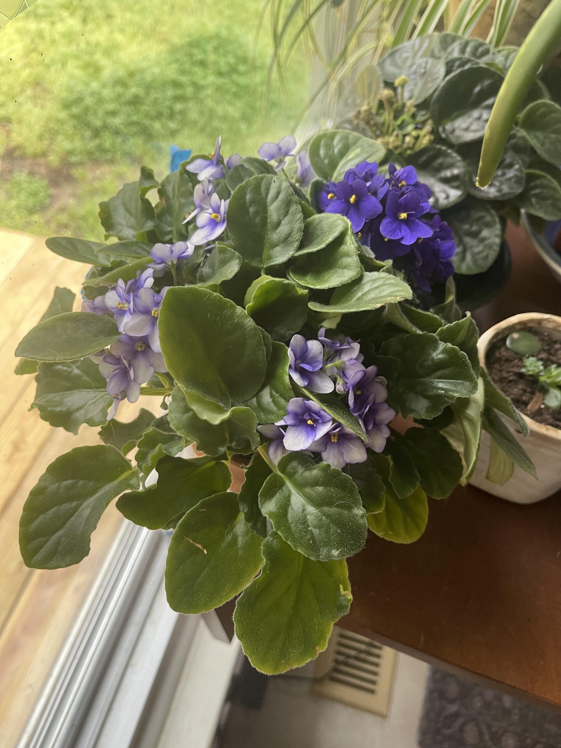My coworker had gorgeous violets on his desk and graciously gifted me a few leaves.