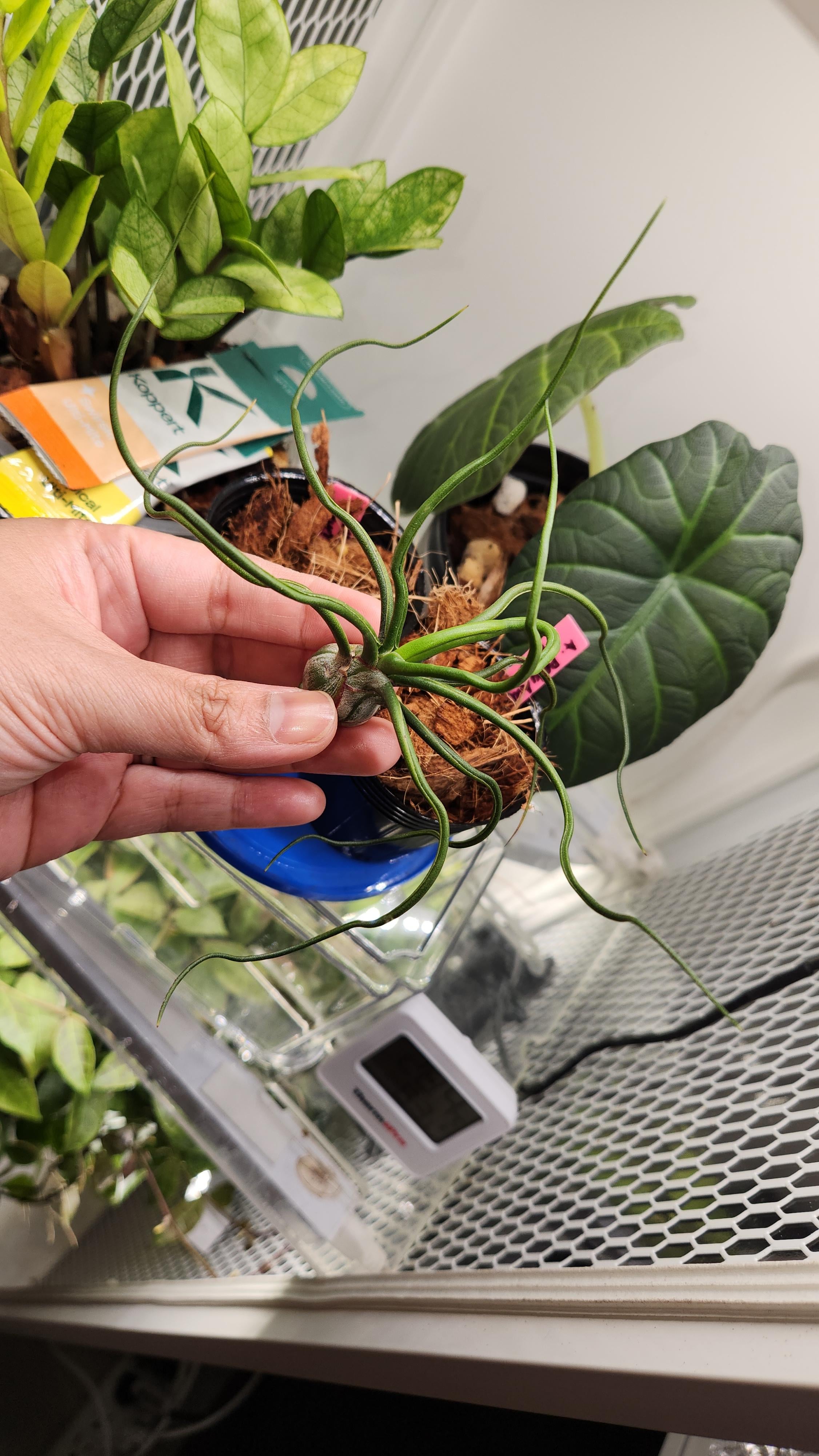 I have this plant for more than a year already and now I'm curious which type or specific hybrid this can be. by Financial_Surround69 airplant 4 Comments nataylor7 7 months ago I think it’s Medusa Weary-Mastodon324 7 months ago That Tillandsia looks super healthy! The twisty leaves are giving major wild octopus vibes. NorthenGarden 7 months ago Tillandsia bulbosa would be the specific name. Doesn’t look like an hybrid, those look like true bulbosa leaves. nathinnizzle 7 months ago This is the Guatemalan form of bulbosa Write A CommentYou must be logged in to post a comment.