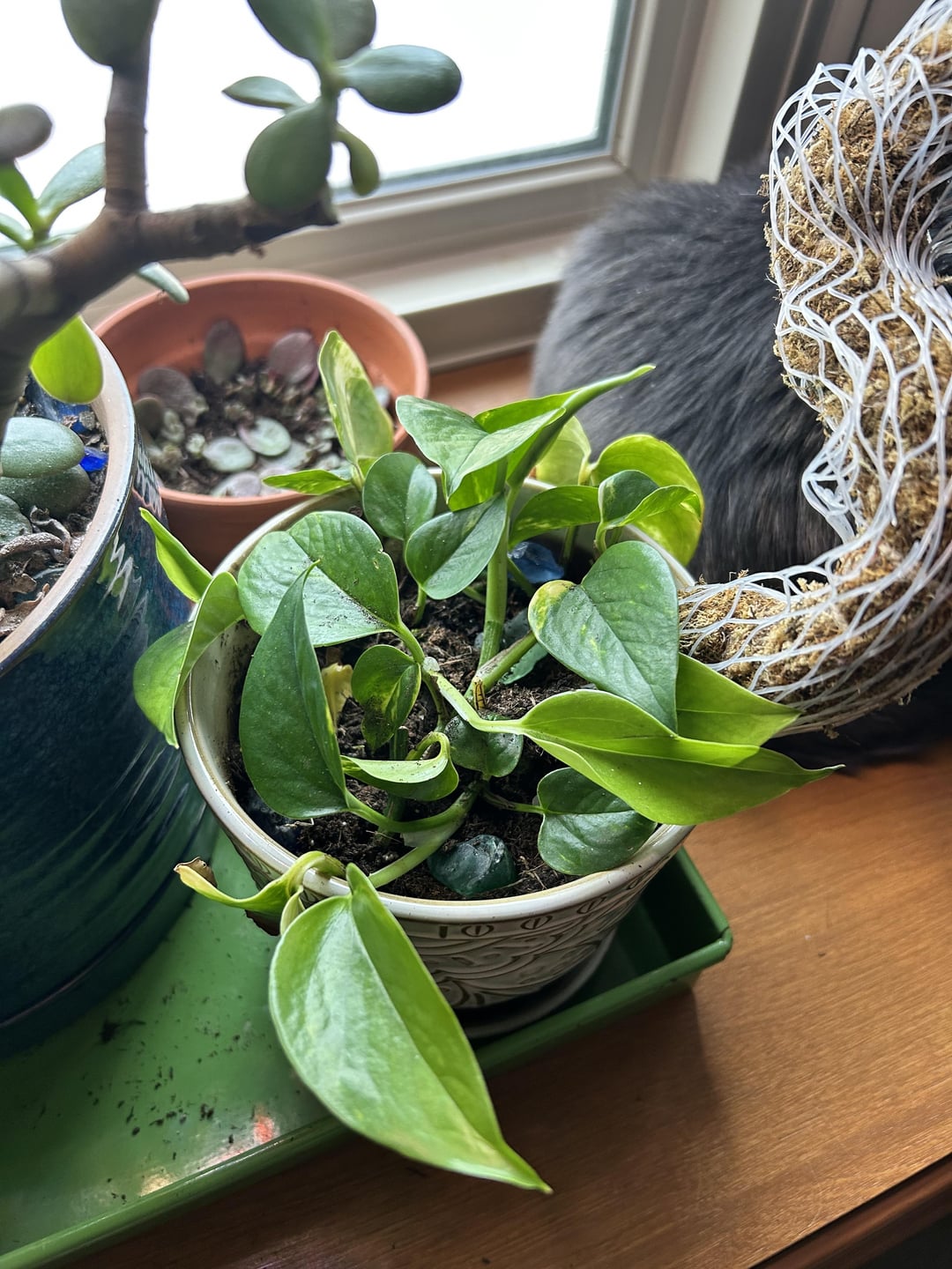 The other that appears to be a pothos – those are also very easy and low maintenance, I feel like they’re very difficult to kill, the only time it has ever happened to me is after repotting.