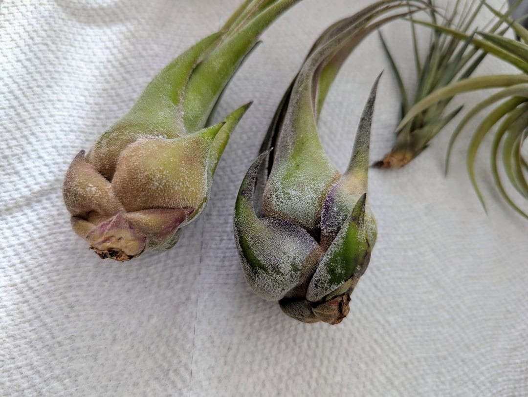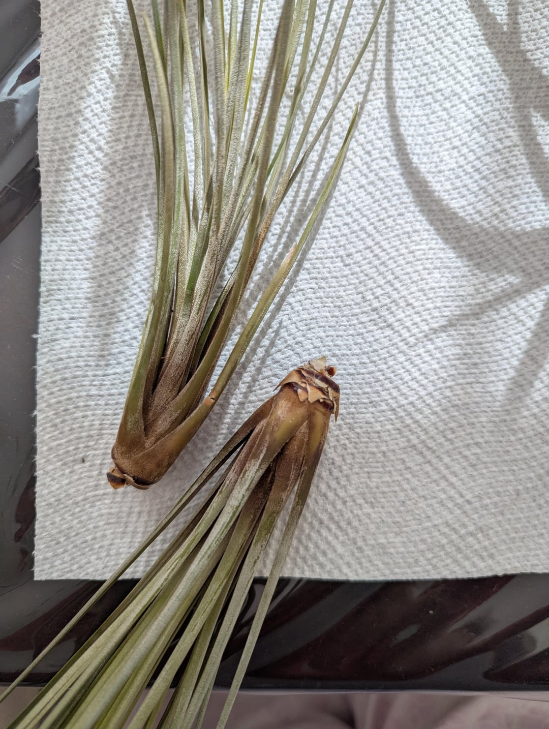 Hi! I am new to air plants. I purchased these online and some of them have brown bottoms. I give them a short soak yesterday when I received them and they still look the same today. One of them bottom is almost black (pic 4). They don't feel mushy or soft to me. Do they look healthy or did I receive bad air plants? Does anyone know the names of these?