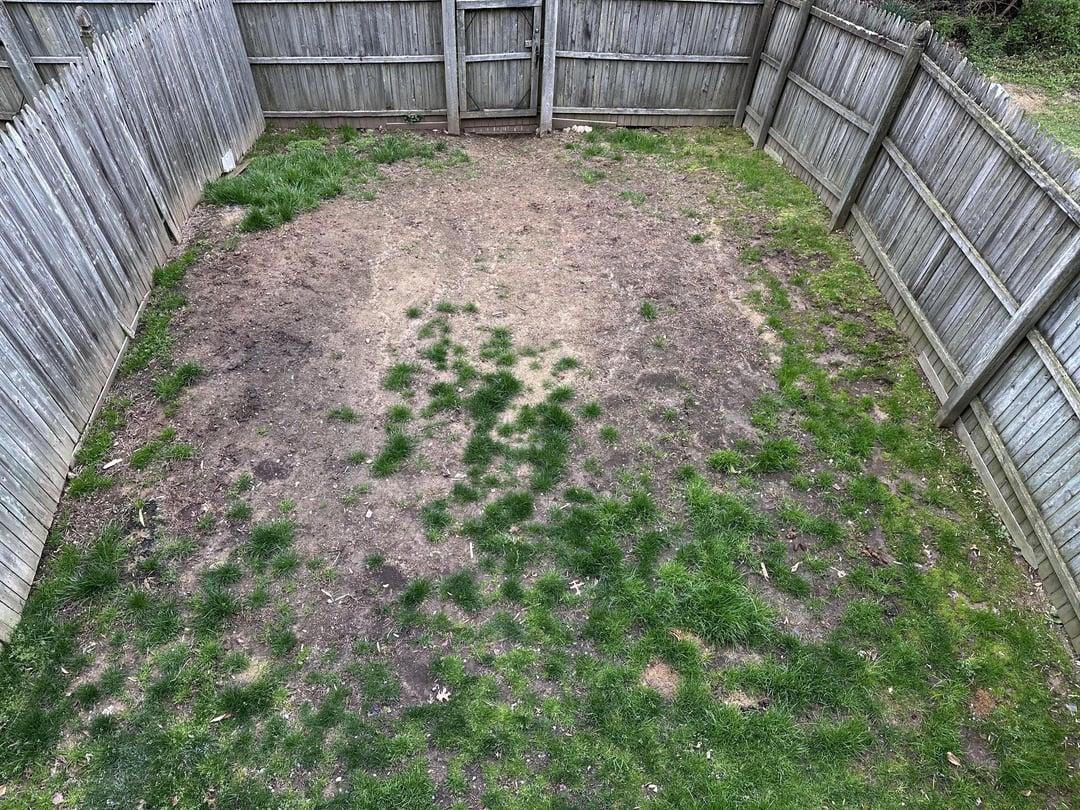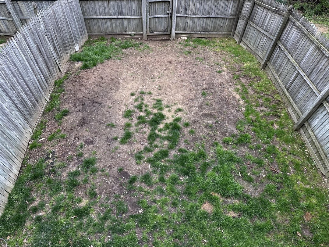 I will mention that this yard has a very terrible slope at the bottom, several corrugated draining pipes that run along the side of the fence and one that runs horizontally at the top of the yard. Also, a labradoodle that is still fairly young and active.