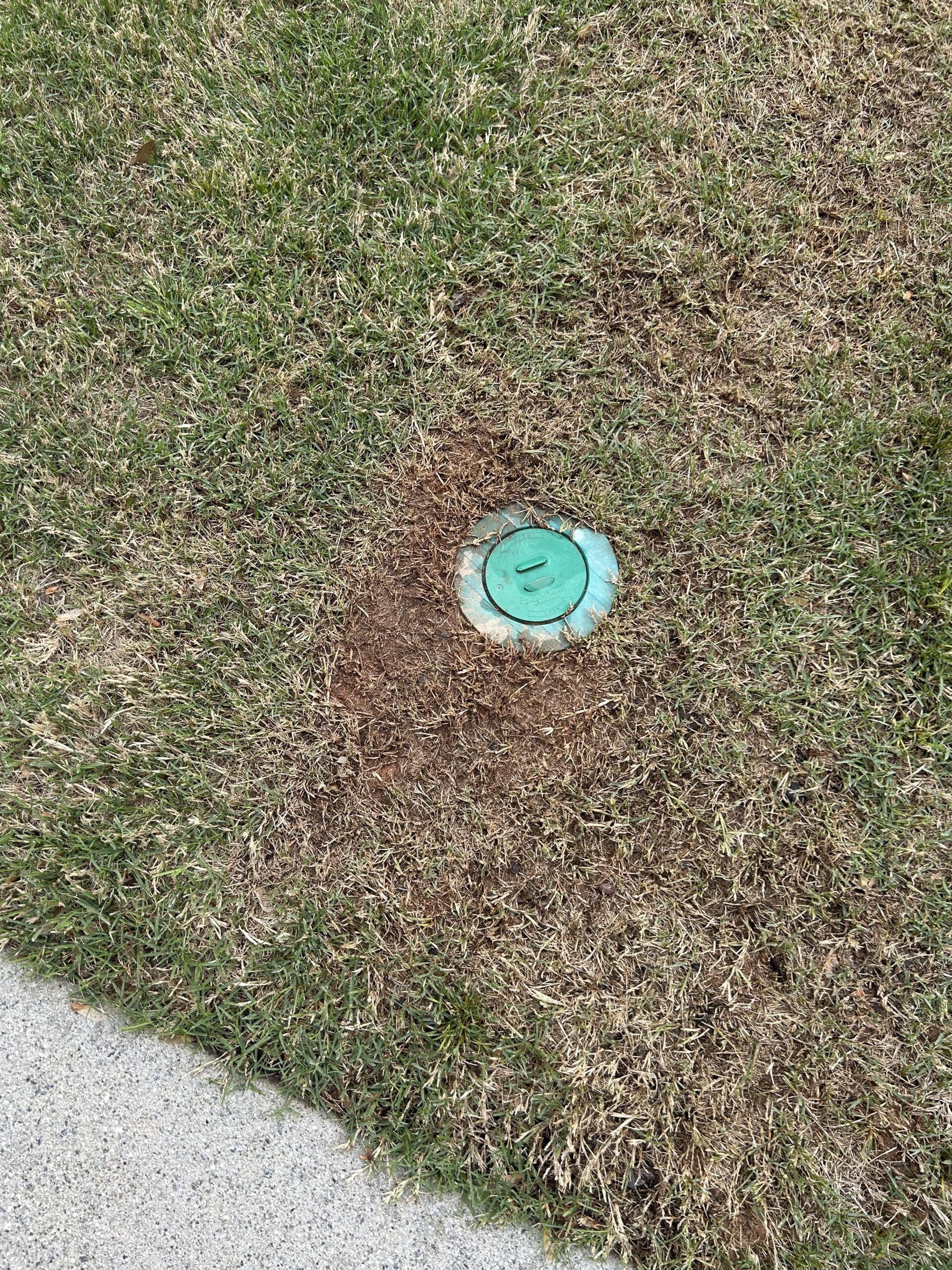 Just need to raise that thing. It’s pest control? Raise it to soil grade and sand level around it.
