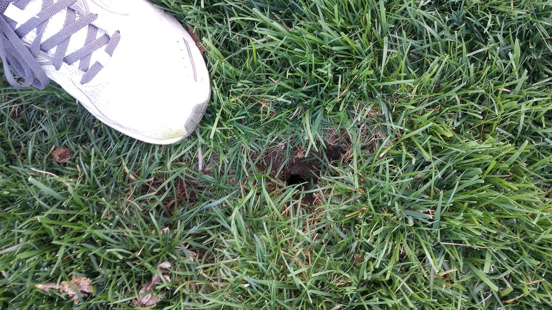 I have similar sized ones in my yard from chipmunks. Shove some rocks down there and try to cover them back up. Most of the time they’ll just dig it back out or another one right beside it but i’ve had success in filling in a few.