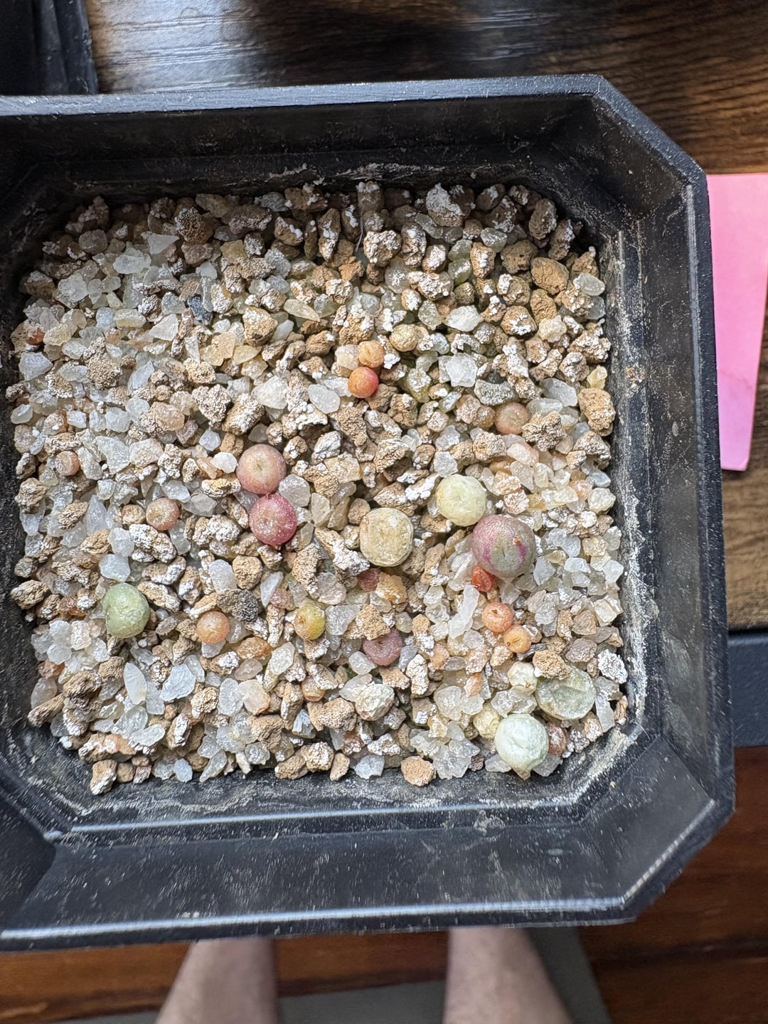 About two months ago I had my first fallen soldier dry up, so I backed up watering to every two weeks to avoid rot. I did this for the other pots and again those are going fine. I planted these in 70% akadama and 30% and keep on a window sill with a grow light. Grit size is 3mm and they get fertilized every month. If anyone has any suggestions to at least save the one to ones that are still plump I’d greatly appreciate it!