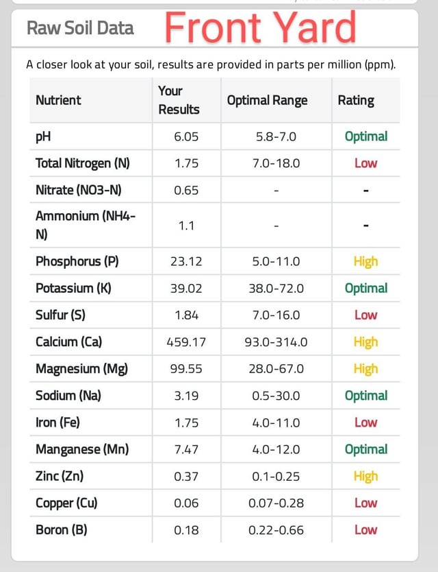 If you’re looking for info on how to interpret soil test results, you can find all you need to know [in this post here.](https://www.reddit.com/r/lawncare/s/LPtlW1pau5)