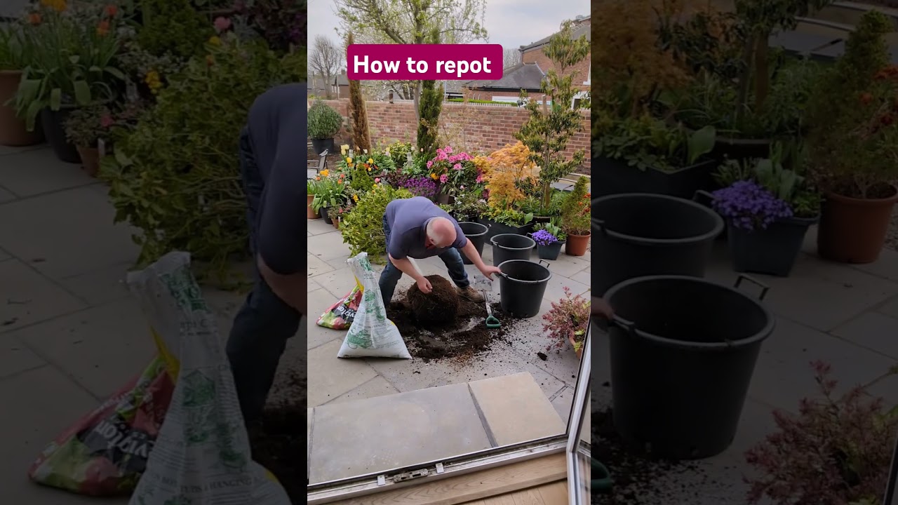 Short 1: How to maintain a container garden. Re-potting a holly tree #gardener #containergardening