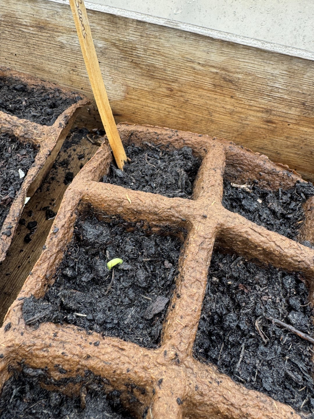 Sweet Peas, Sunflowers and the tiniest shoots of some French Climbing Beans coming through in the polytunnel!