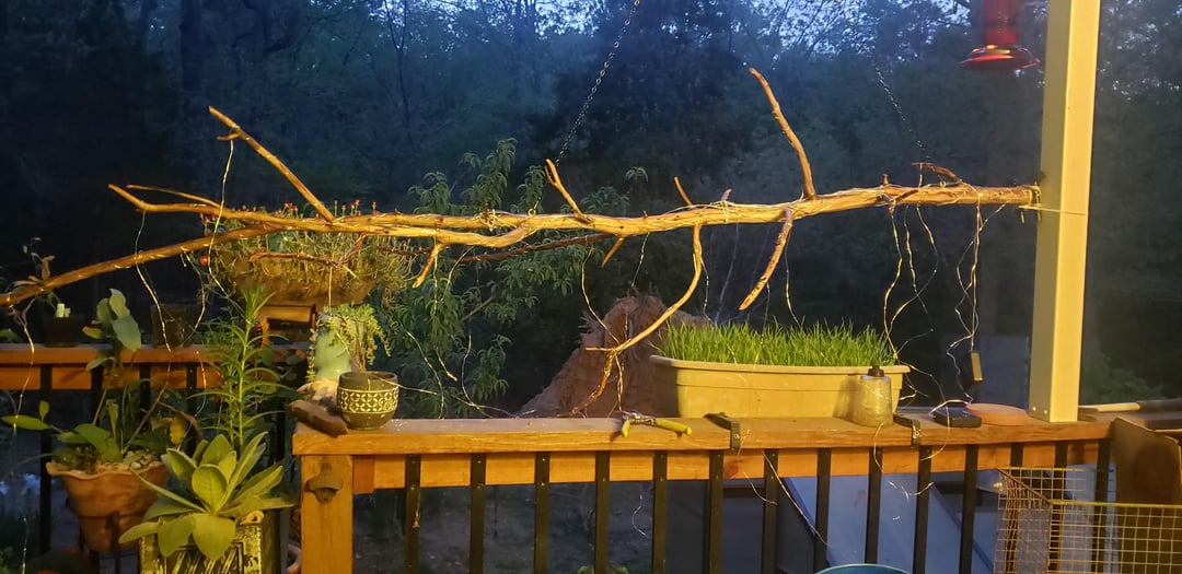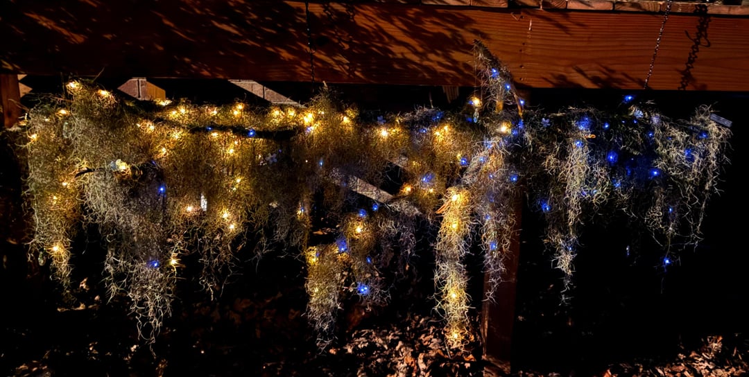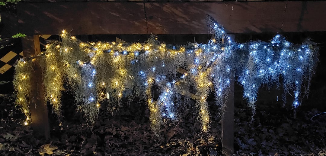 Mikerk 6 months ago That’s a really cool use for usneoides. Might steal your idea Icicle lights are probably ideal for it