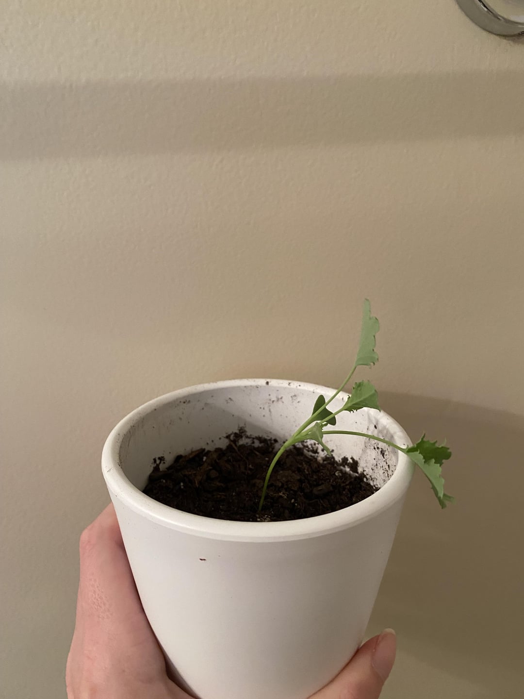 Growing kale indoor and it seems to be leaning quite hard at this point. Am i supposed to add more dirt to the pot now to surround/support it? Or do i just leave it alone