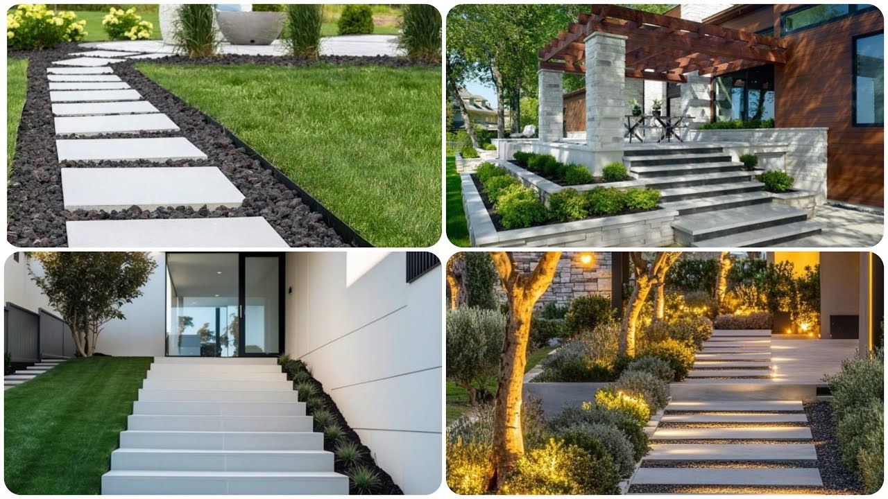 Use stone pathways, gravel, or pavers for clean lines and less plant care.