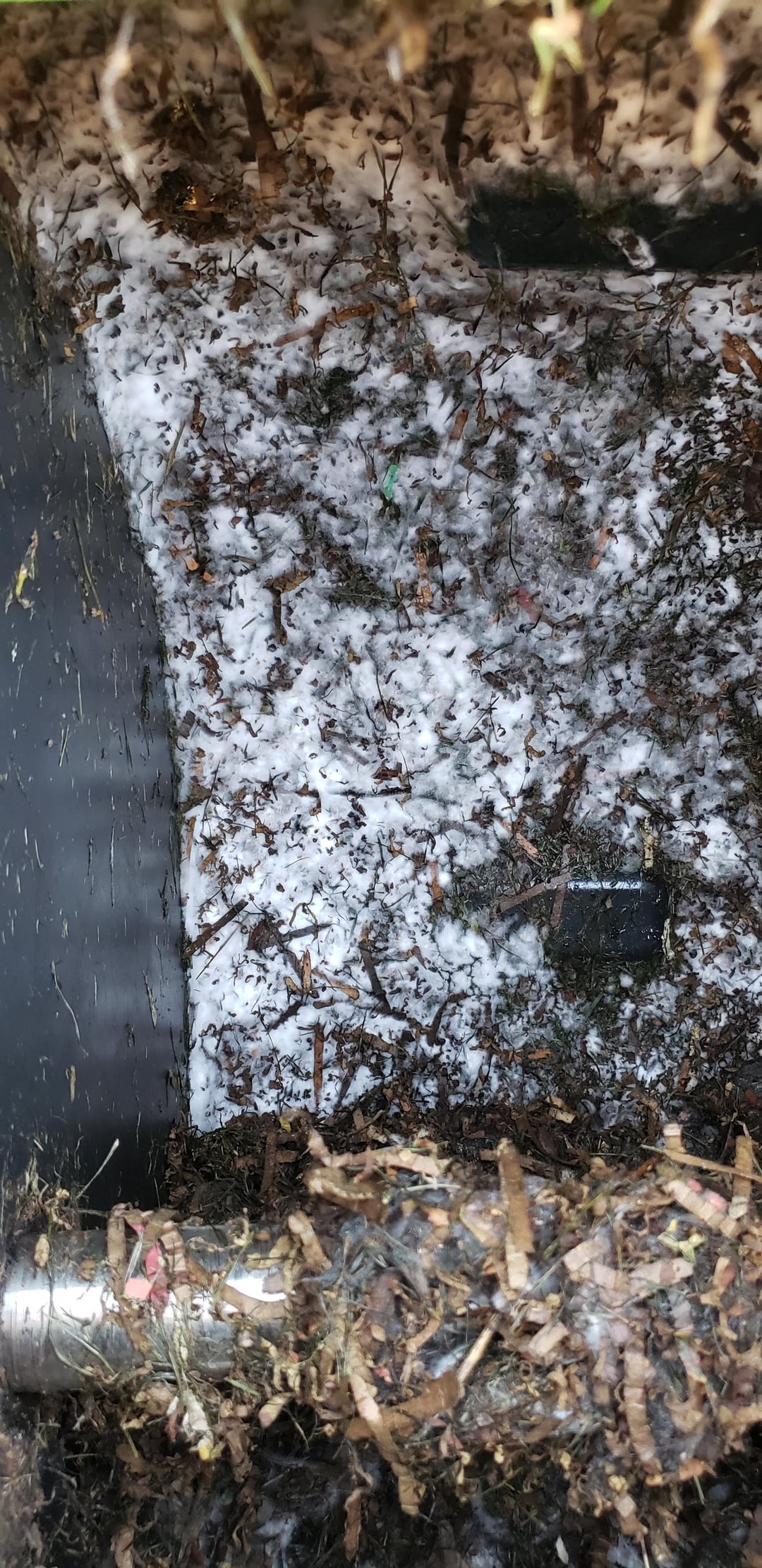 Started a new batch in the tumbler last week with some lawn clippings, cardboard, and wood shavings. Checked on it and found this gross winter wonderland. I'm assuming this is good stuff, but anyone know what it is? by awkward_marmot composting Write A CommentYou must be logged in to post a comment.