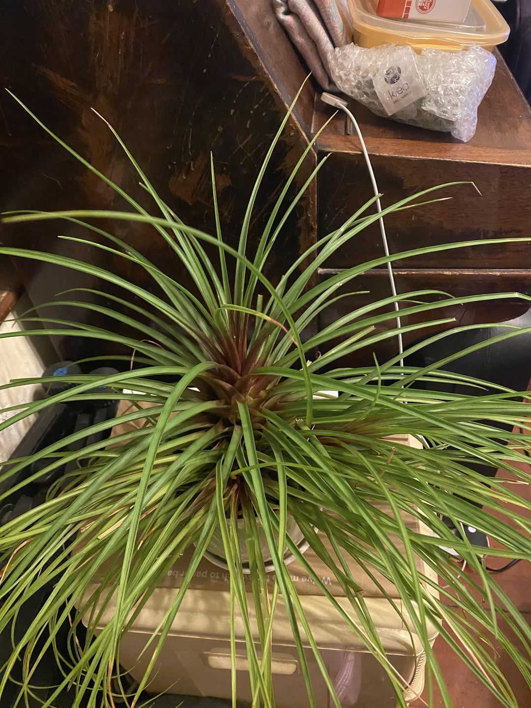so i inherited this pink quill from my mum and these little growths have appeared on one of the leaves. they look like fine hairs with a little white bit on top.
