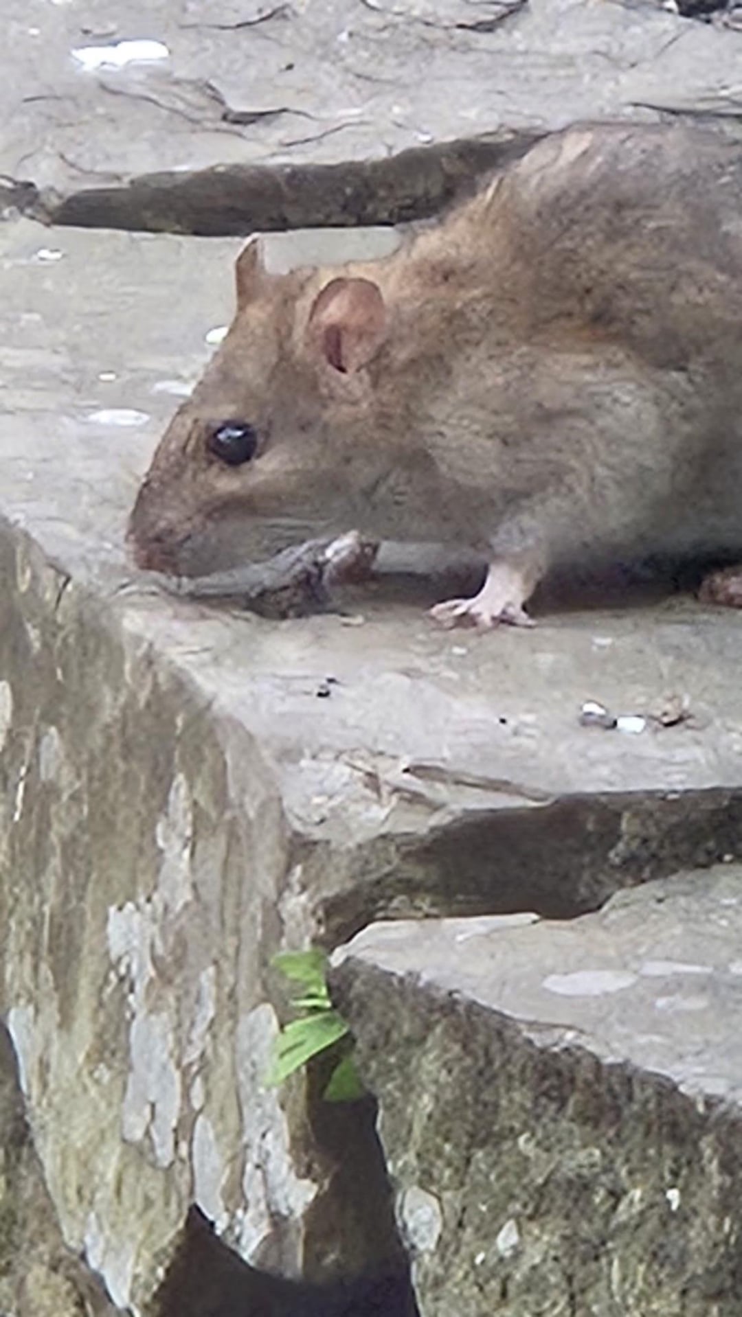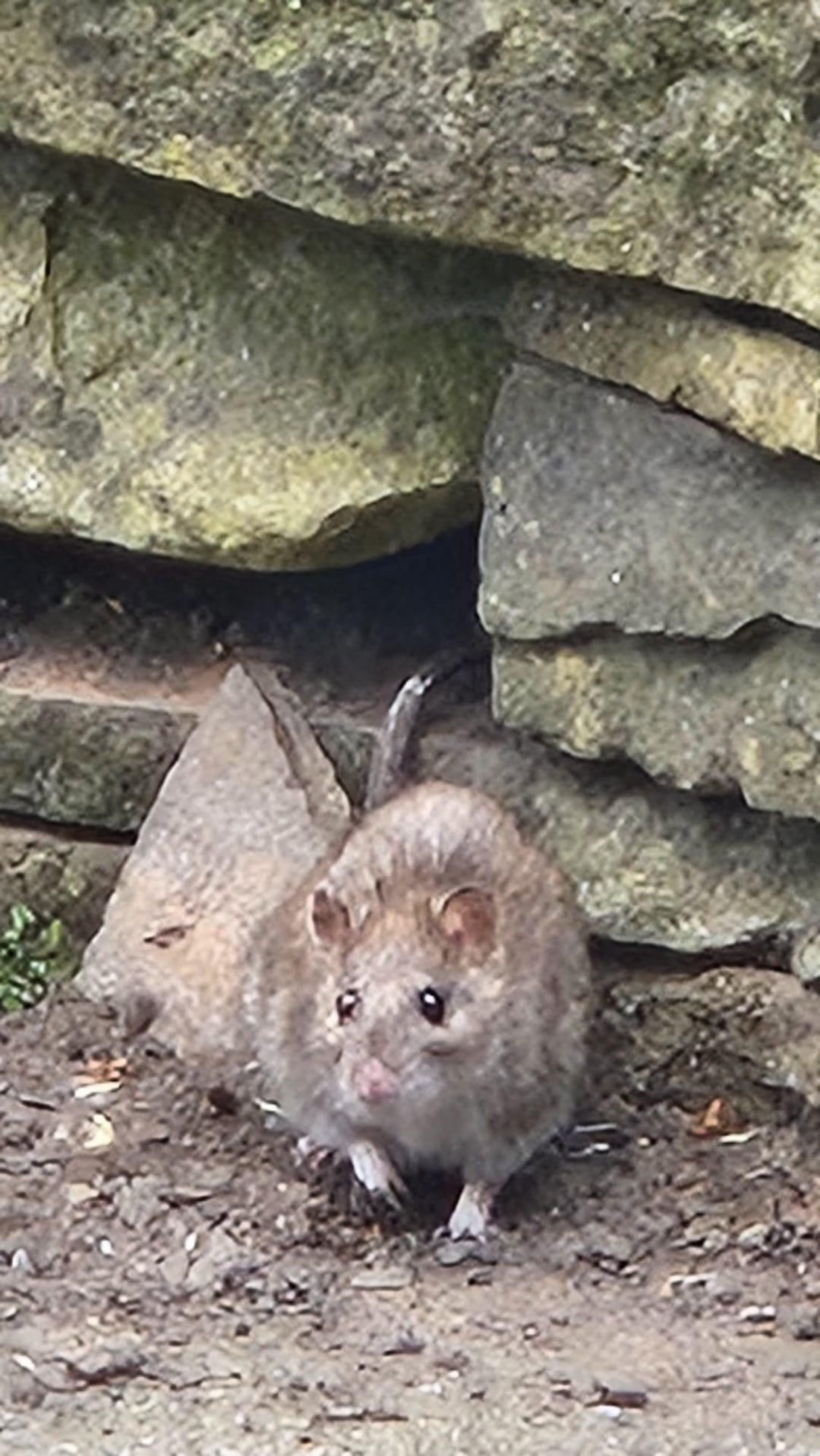 Now I’ll preface this by saying I’m posting for my lovely mum, who is deathly afraid of anything rodent-y, and I’m a vet student who’s very partial to a rodent, so this might sound a little biased! Recently, my parents went on holiday for a week and when they came back, the garden wall had been dug out (we had a family of field mice living there, so it was brushed off as being them). Yesterday, my mum spotted this little rat emerging from the wall and hoovering up the bird seed (much to her dismay!), and she came back at the same time again today (certainly the same rat as she’s got a little bit of white paint on her tail). Now for my question – how bad would it be to leave this little rat be? She’s obviously made a home in our wall (dread to think what’s happened to our field mice unfortunately). My mum’s stopped feeding the birds to try and discourage it, but realistically will it want to move on if it’s got a little home already? And my most important question haha, what are the chances of this being someone’s pet ratty who’s gotten lost? It looks and acts an awful lot like a pet rat, it’s so tidy and clean looking – but I would hate to box up a poor wild rat and bring it to work to try and reunite it with its nonexistent owners 😅