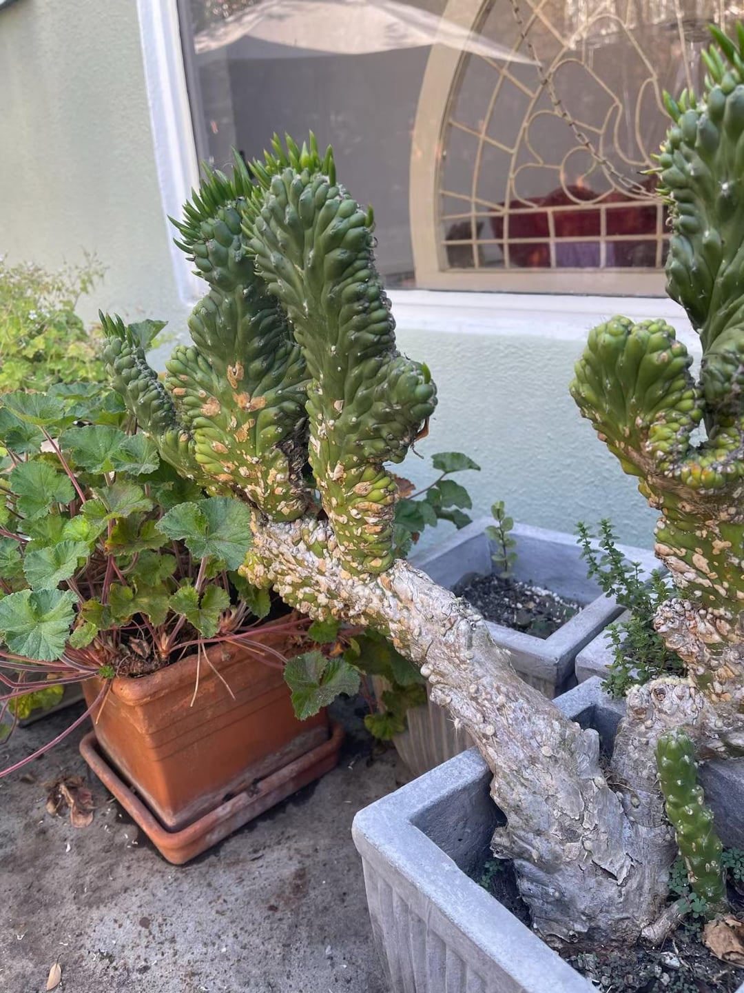 This is my mom’s plant and it’s pretty old, I think she’s had it over 10 years but not sure on exact age. She is wondering what is wrong with it and how to help it? She’s thinking of cutting off the green and replanting them. The grey part is not soft or mushy. She lives in southern california and it’s outside. Thanks for any help!