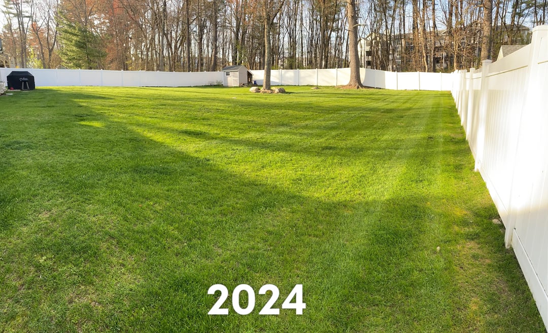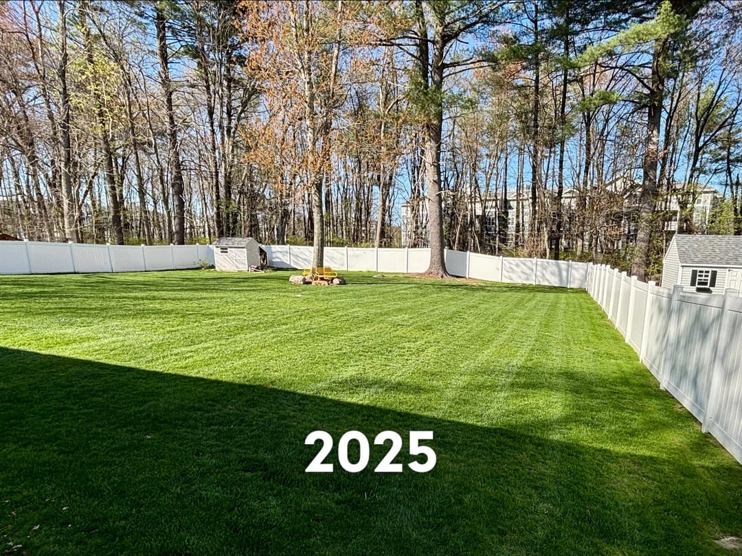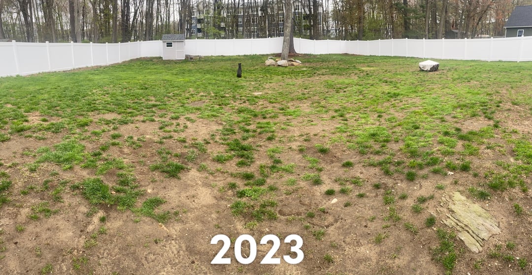Great backyard. Can tell you are in MA or NH. Trees and apartments in the back give it away.