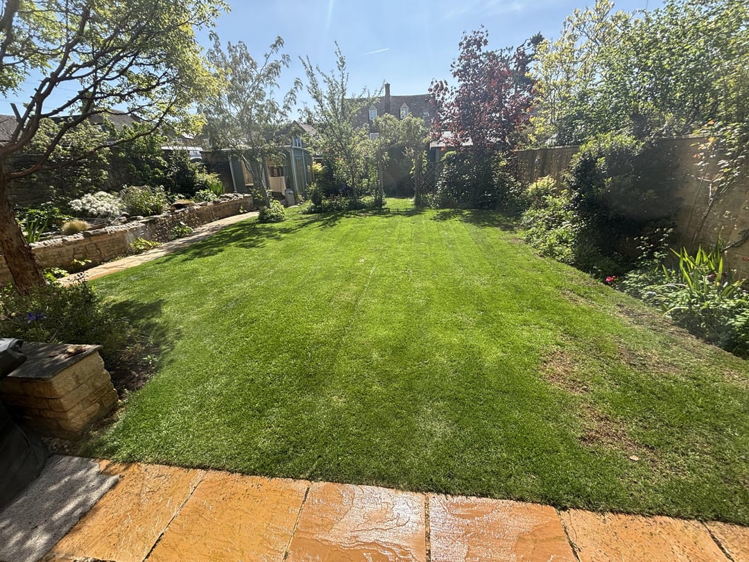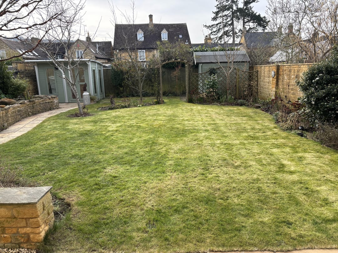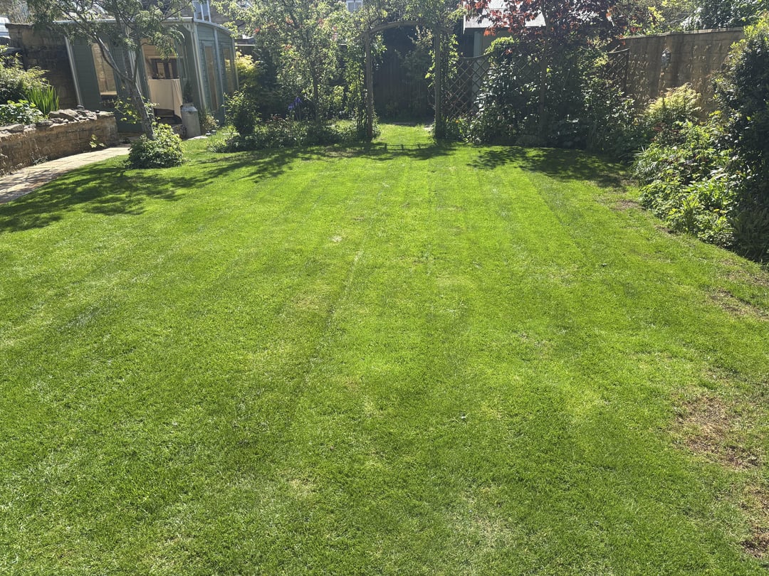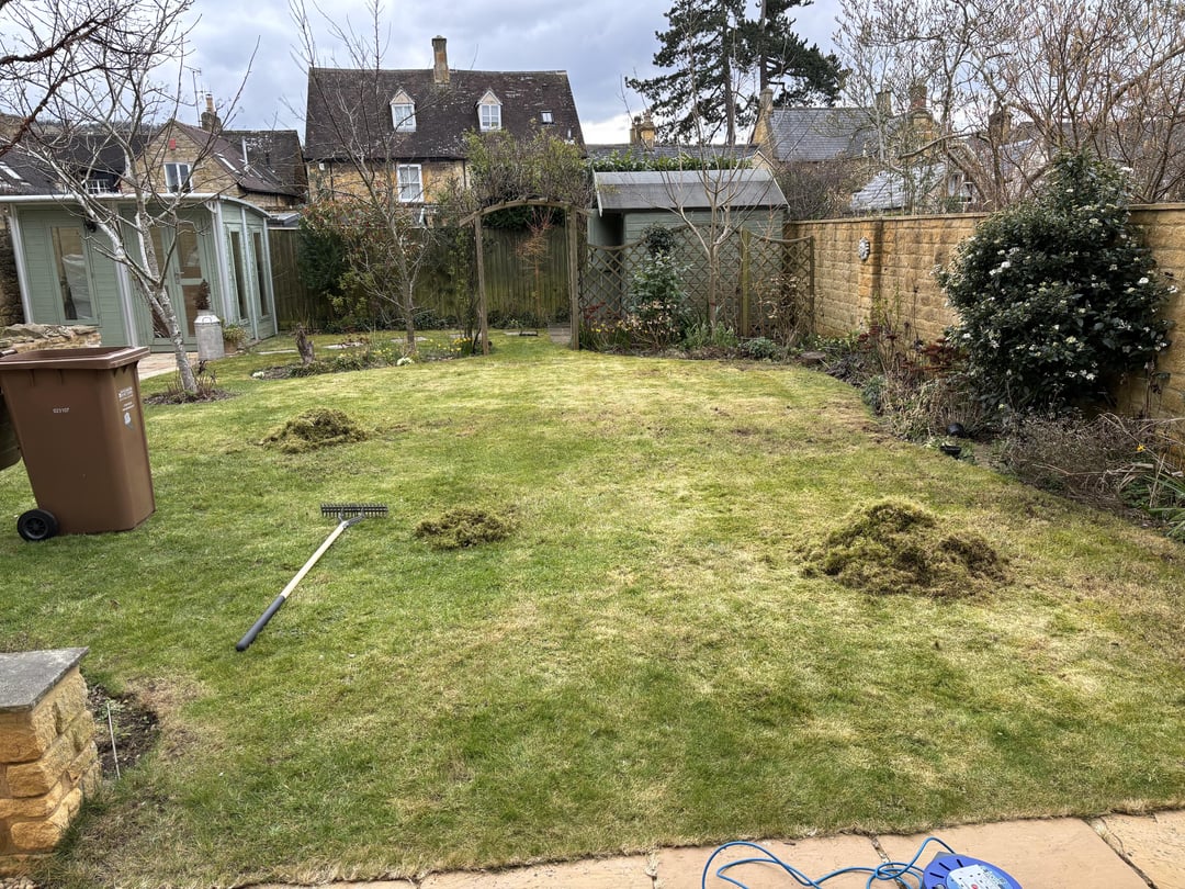 Before, during and after pictures. A lot of work at a new house, cut it all down, scarify to death, aeration after aeration, overseed, topdress. Wait. It’s getting there, right?
