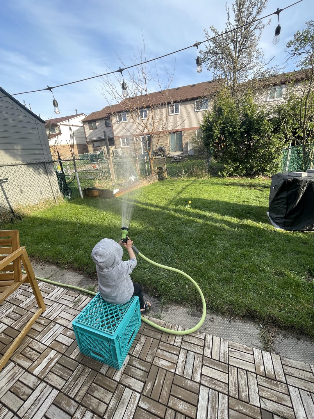When my kids were that young they’d aerate the lawn with the hose set to the jet nozel.