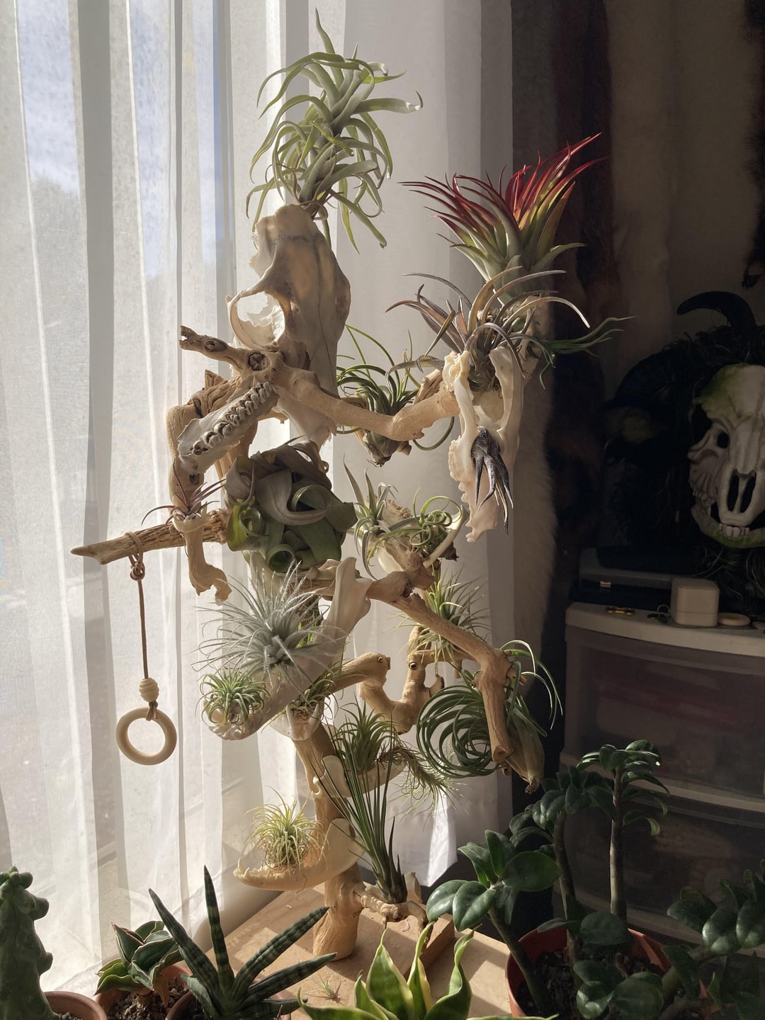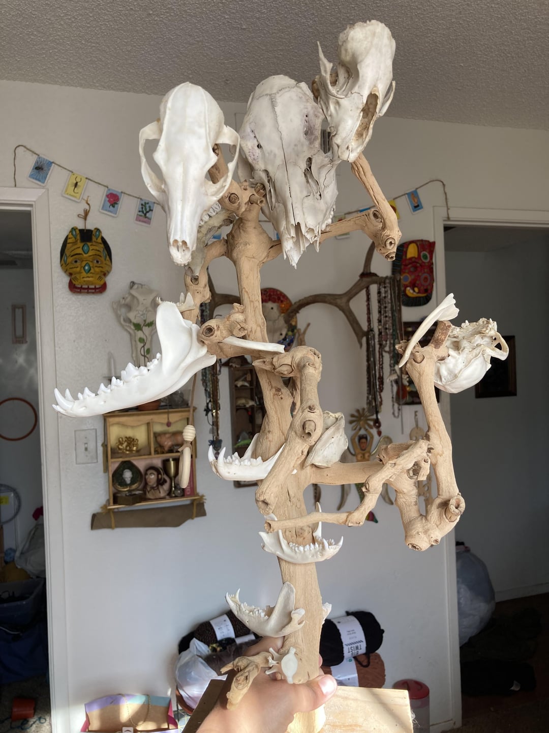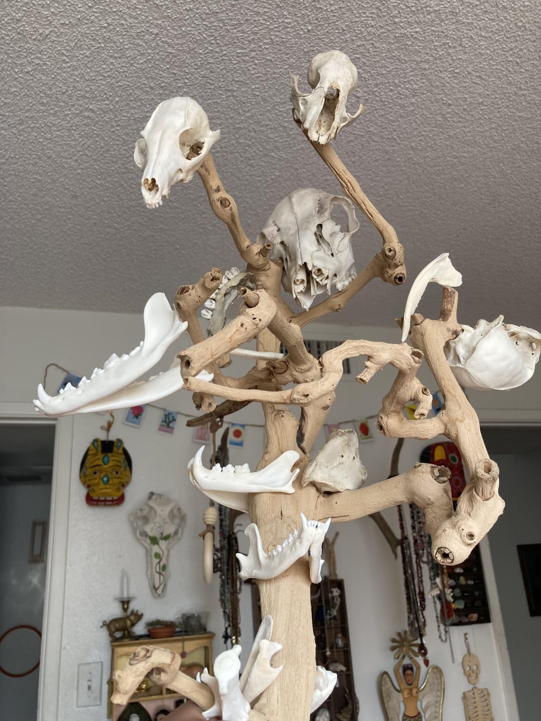 Broken skulls and jawbones and a few random bits I had lying around! Mink, deer, grey fox, raccoon, opossum, armadillo, coyote, bobcat, deer (unknown species), and common snapping turtle. Hard to get nice pictures with all the plants in place, but it makes me happy!