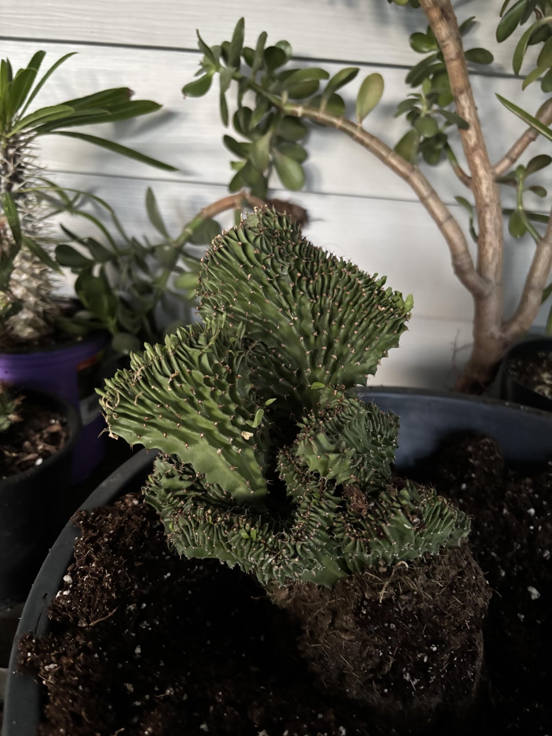 Got this in a mixed succulent pot. it came with two put together to look like one big piece. The other one has not reverted. The reverting stems have 5 ribs. Had it for a while. Now I’m on a mission to label all my euphorbia, cactus and succulents.