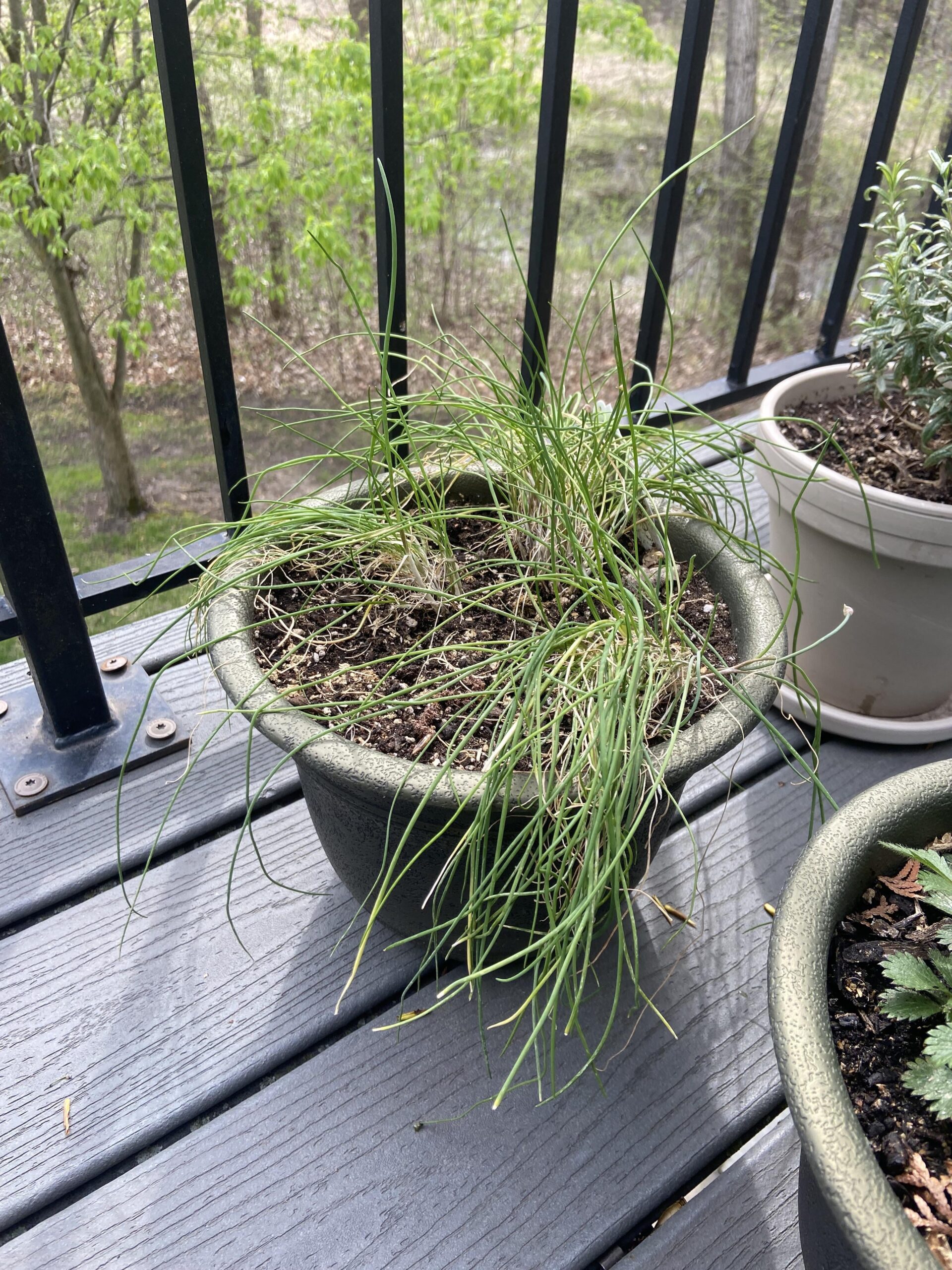 I ended up repotting the chives and separating them into several smaller bunches. I cut them down to a few inches so it will all be new stuff. Hopefully this works!