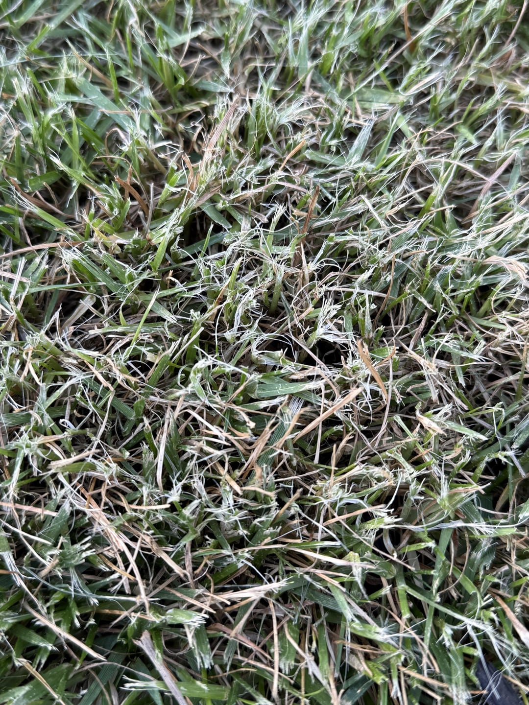 As for your grass it looks like zoysia that wasn’t scalped early in the season. So every time your cut the grass. It will be brown/green.