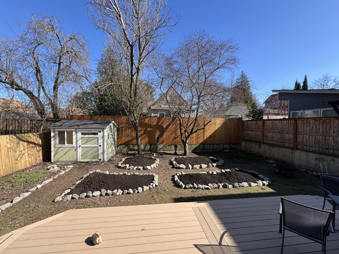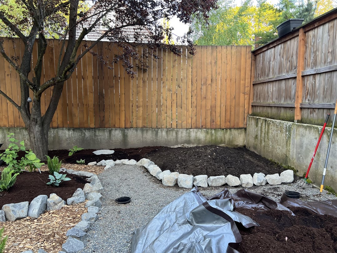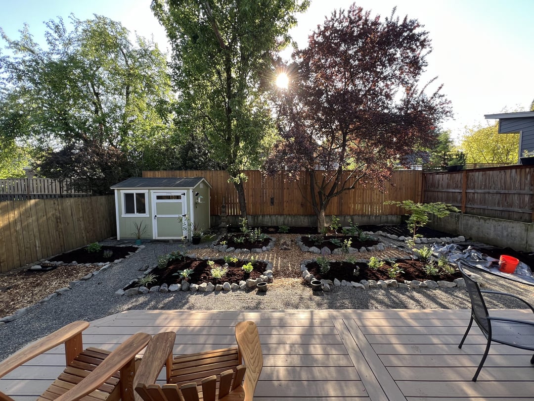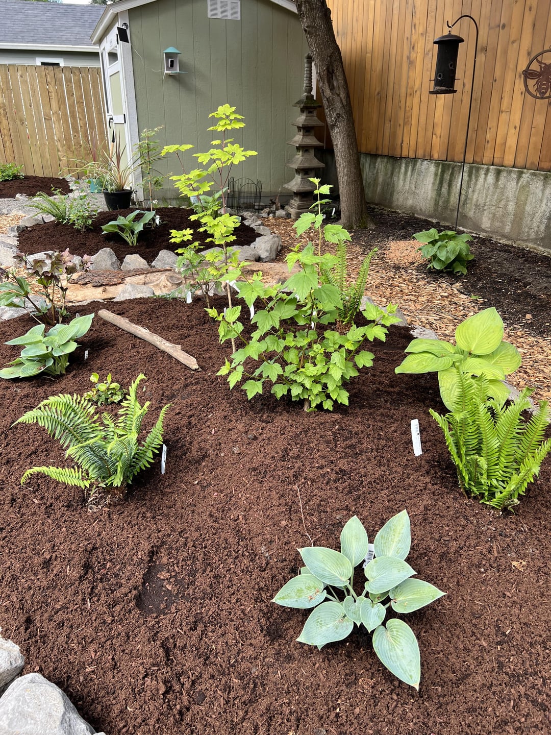 I chose a mix of ornamental and PNW natives, with plans to add more natives in the fall, and raised beds for veggies next year.