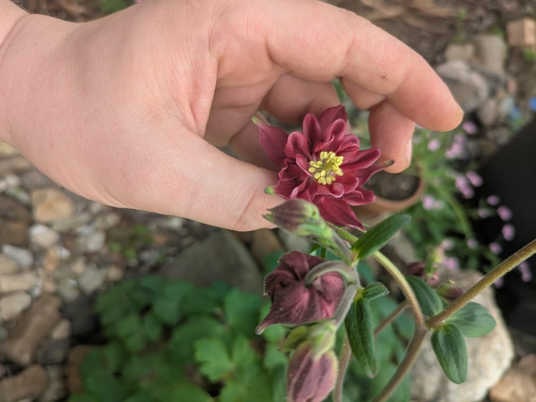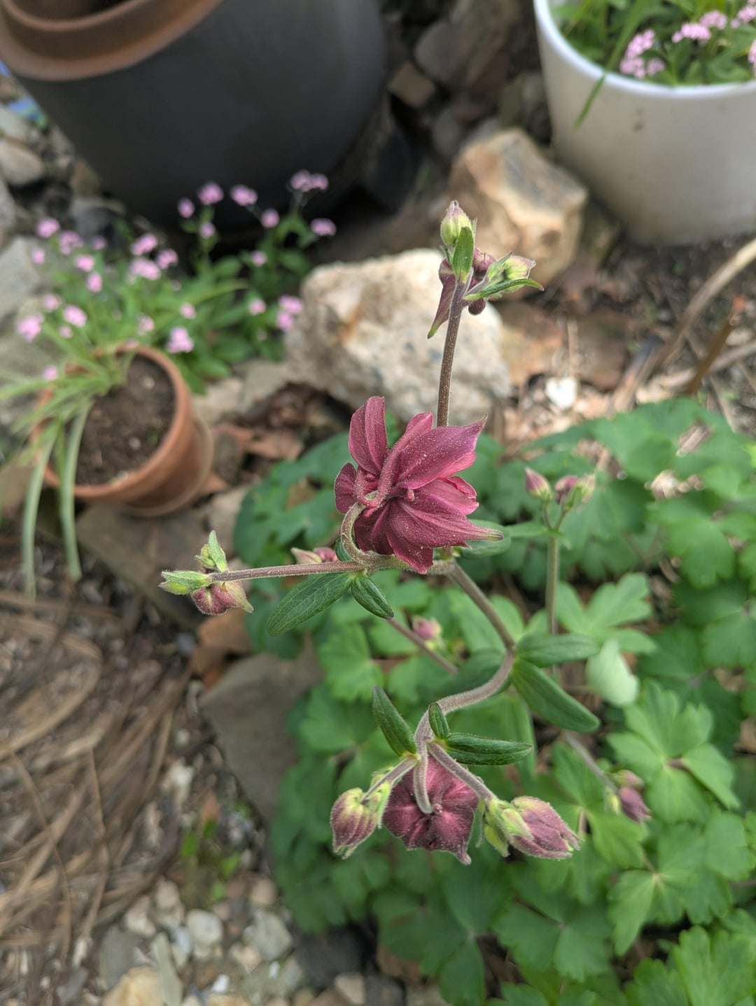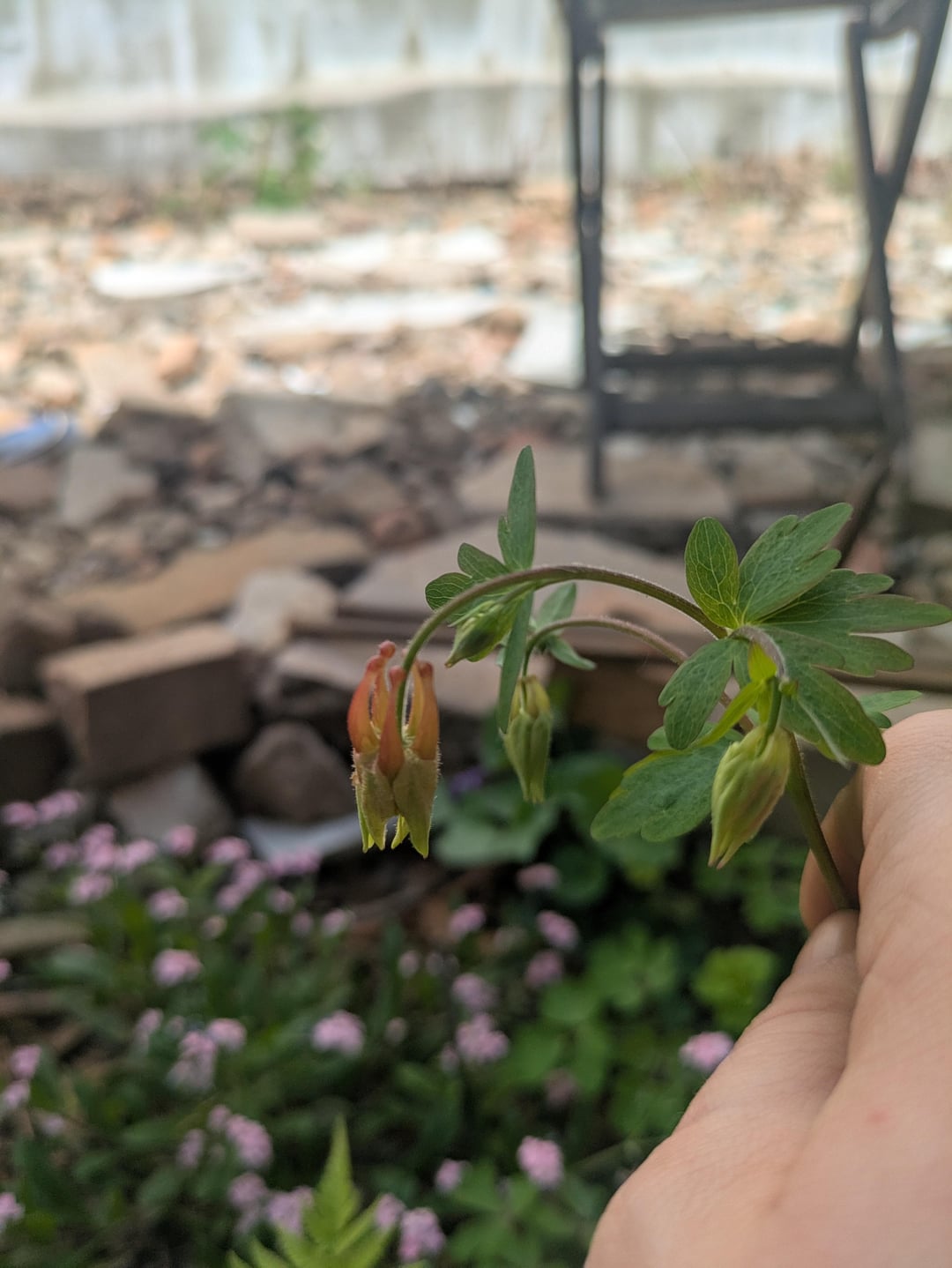 2 reseeded forget-me-not, barley, and a bleeding heart in the back