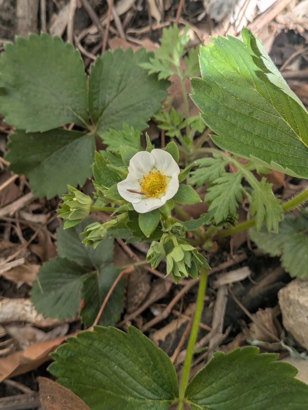 4 jacob's ladder in its second year after transplant surrounded by wild strawberry