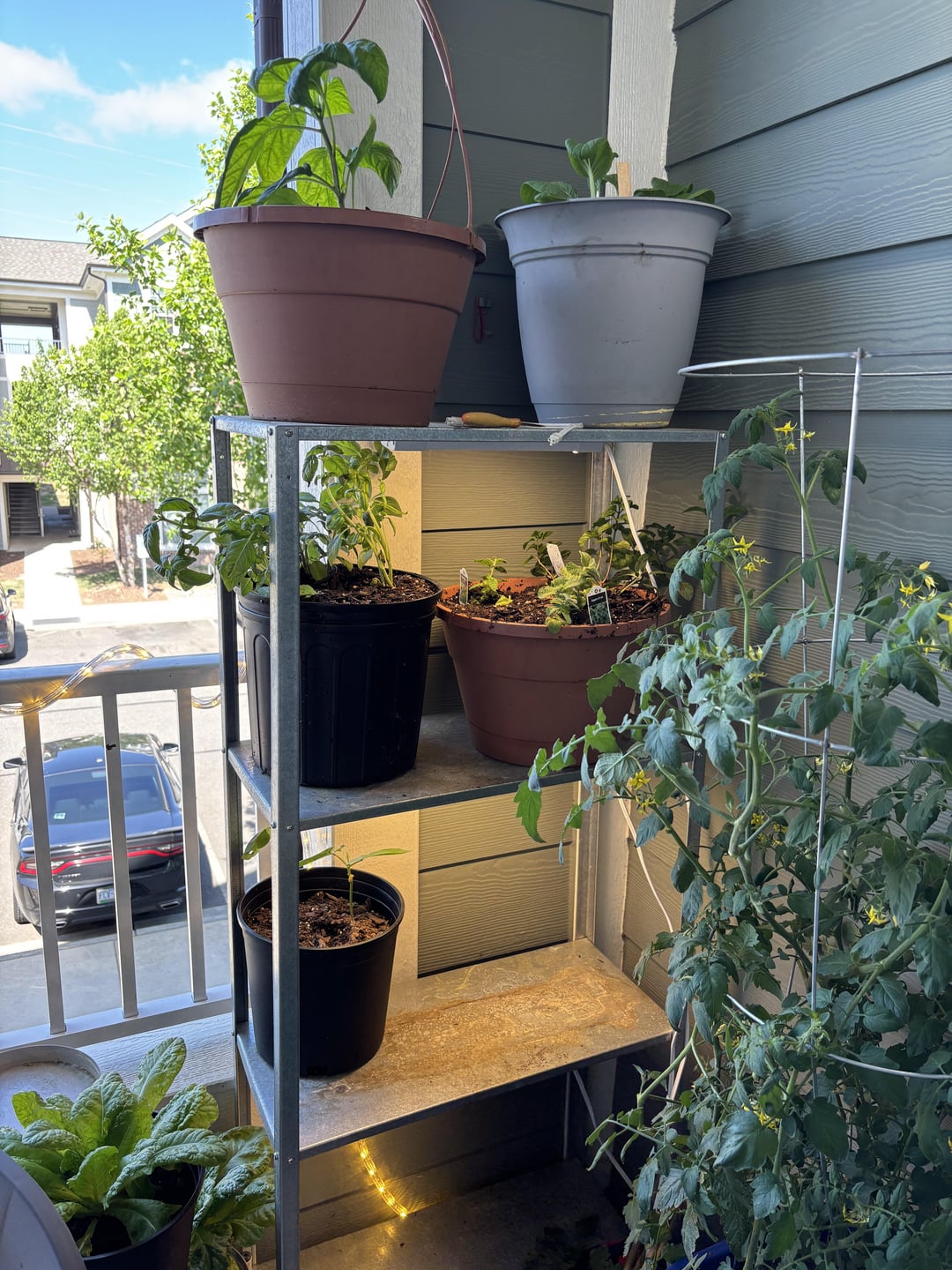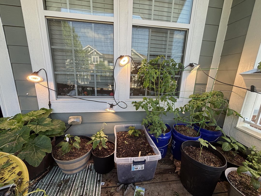 Last year was… a flop. I started too late and didn’t have proper light. This year I have lights to help with the fact that my balcony only gets part sun and I started things a lot earlier. I already have tomatoes and squash and sugar snap peas flowering(and producing in the case of tomatoes)! I will be hand pollinating stuff like squash to ensure production because I adore squash. I frequently rearrange and change light heights to give plants what they need and even though some containers aren’t “big enough” this is for 2 people I don’t need to exactly maximize production from individual plants.