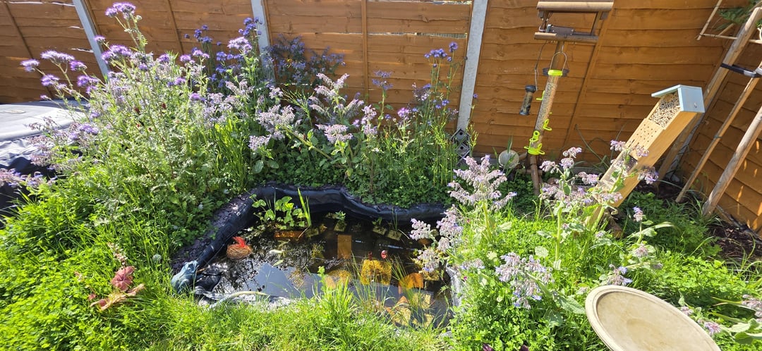 Sprinkled wildflower seeds surrounding it, added a bird feeder, bee/bug hotel and a bird bath.